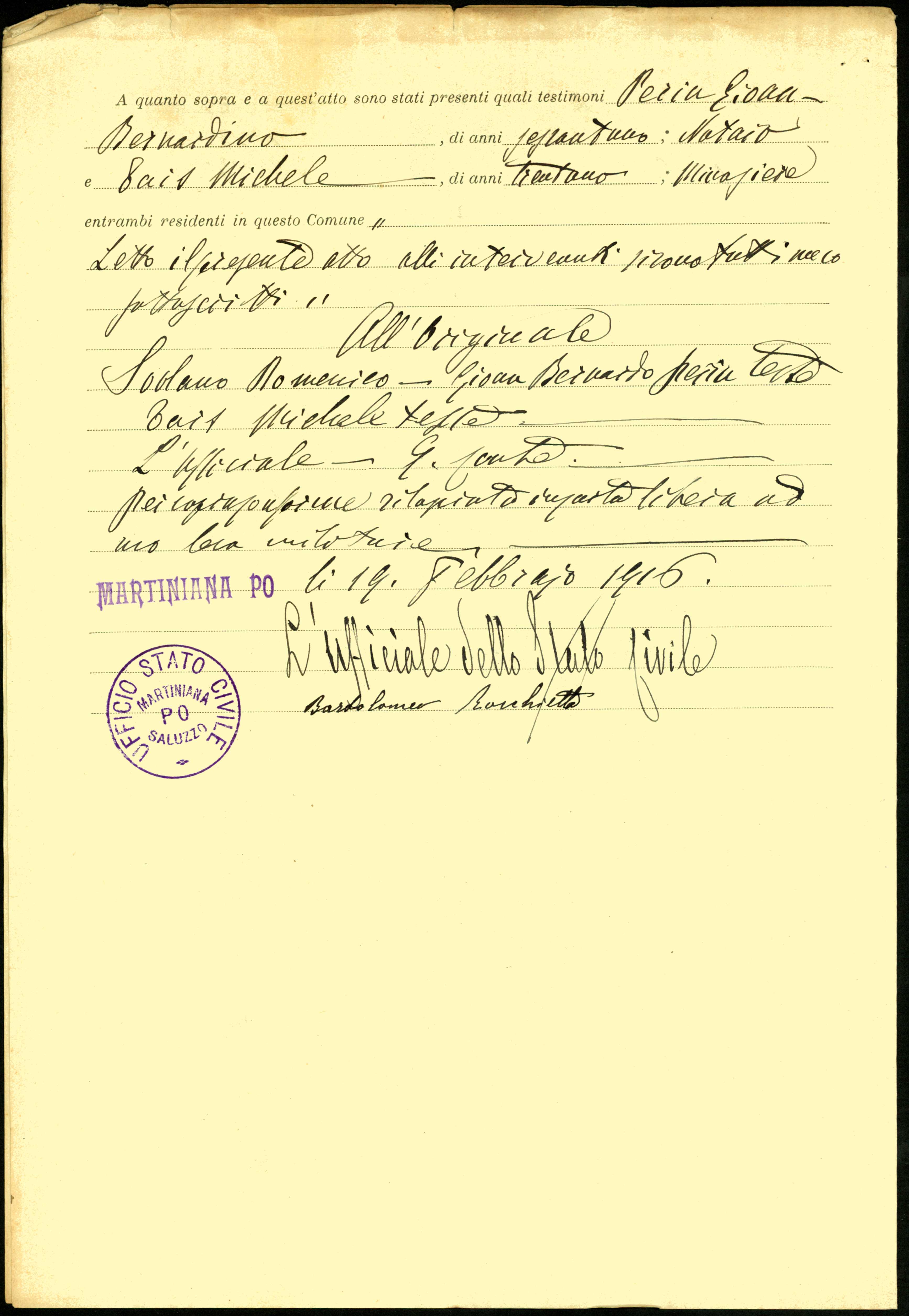 | Percorso: Istituto per la Storia del Risorgimento Italian.../Fondo caduti prima guerra mondiale/Smaldone Giuseppe - Soldo Luciano/Sodano Matteo, Martiniana Po (Cuneo) | |||||||||||