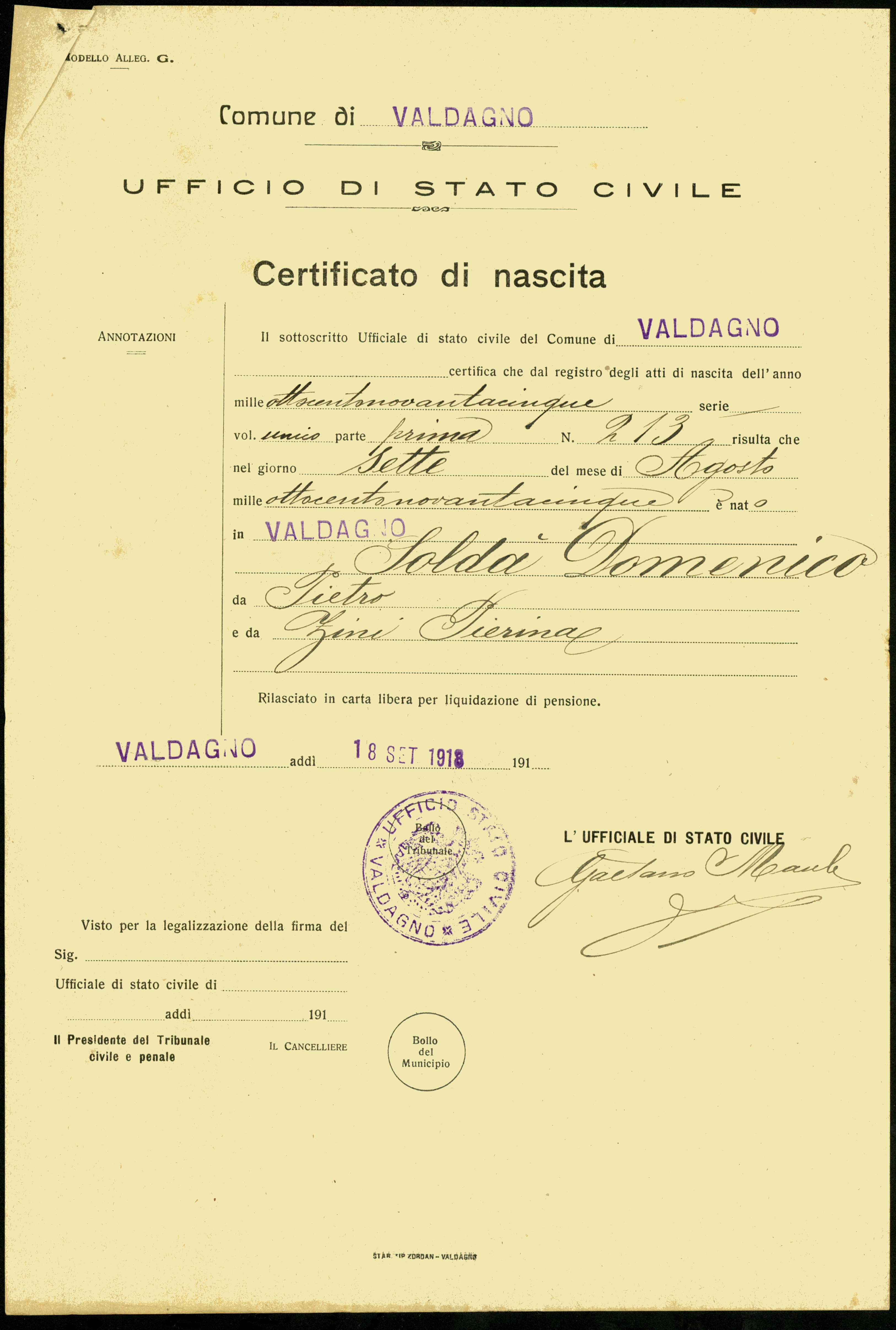 Soldą Domenico, Valdagno (Vicenza) |