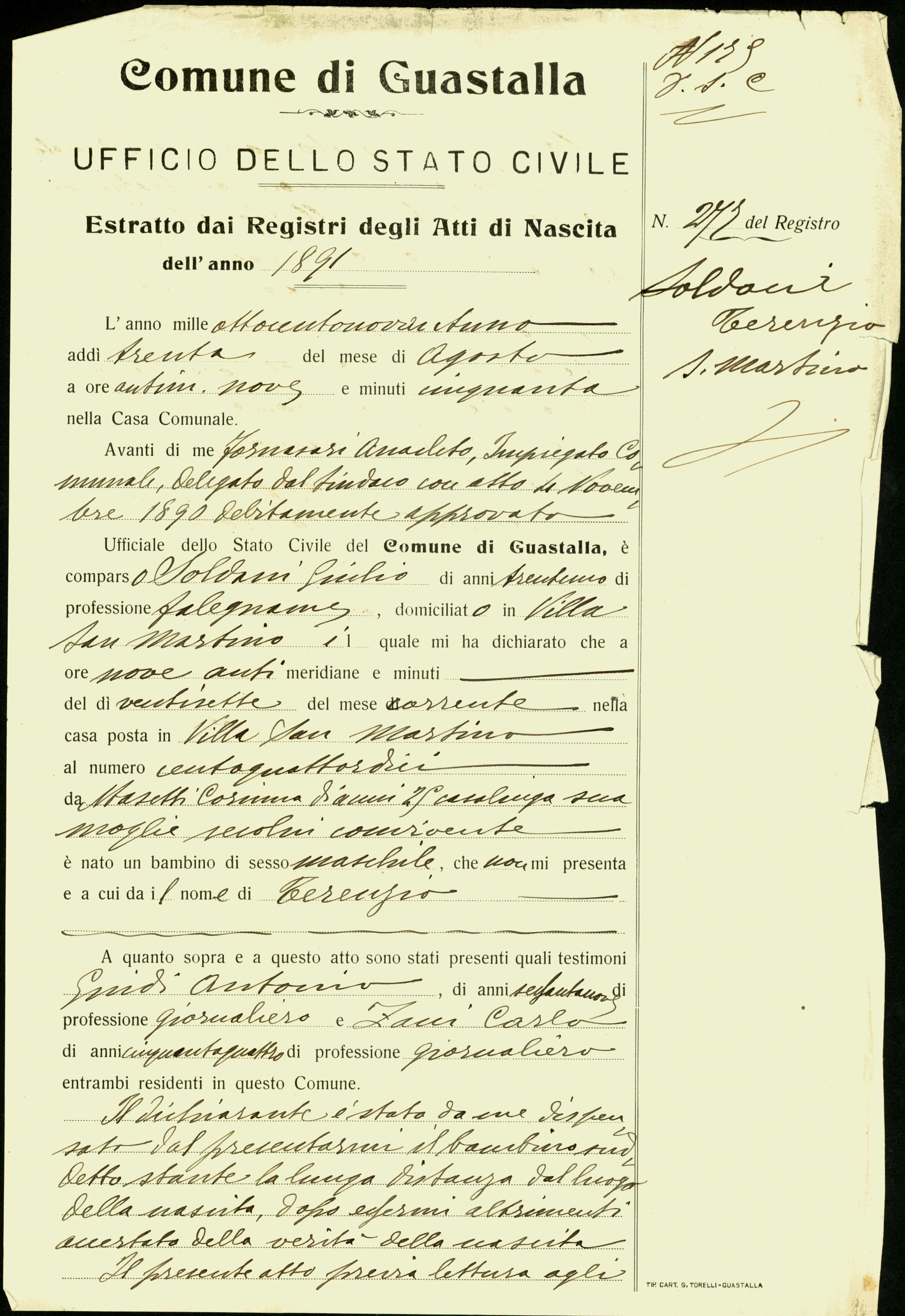 Documento: Soldani Terenzio, Guastalla (Reggio Emilia)