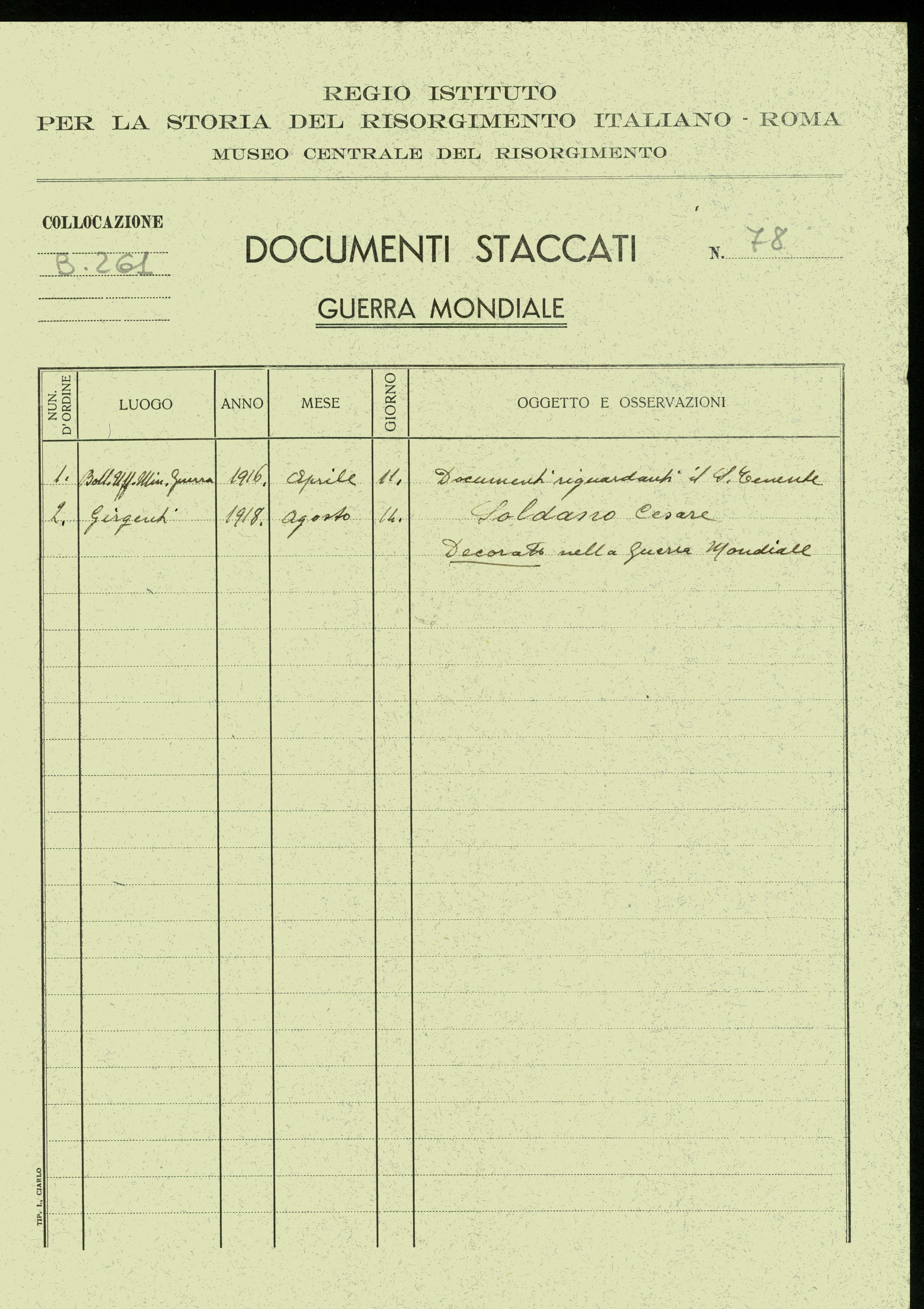 Istituto per la Storia del Risorgimento Italian.../Fondo caduti prima guerra mondiale/Smaldone Giuseppe - Soldo Luciano/Soldano Cesare, Girgenti
