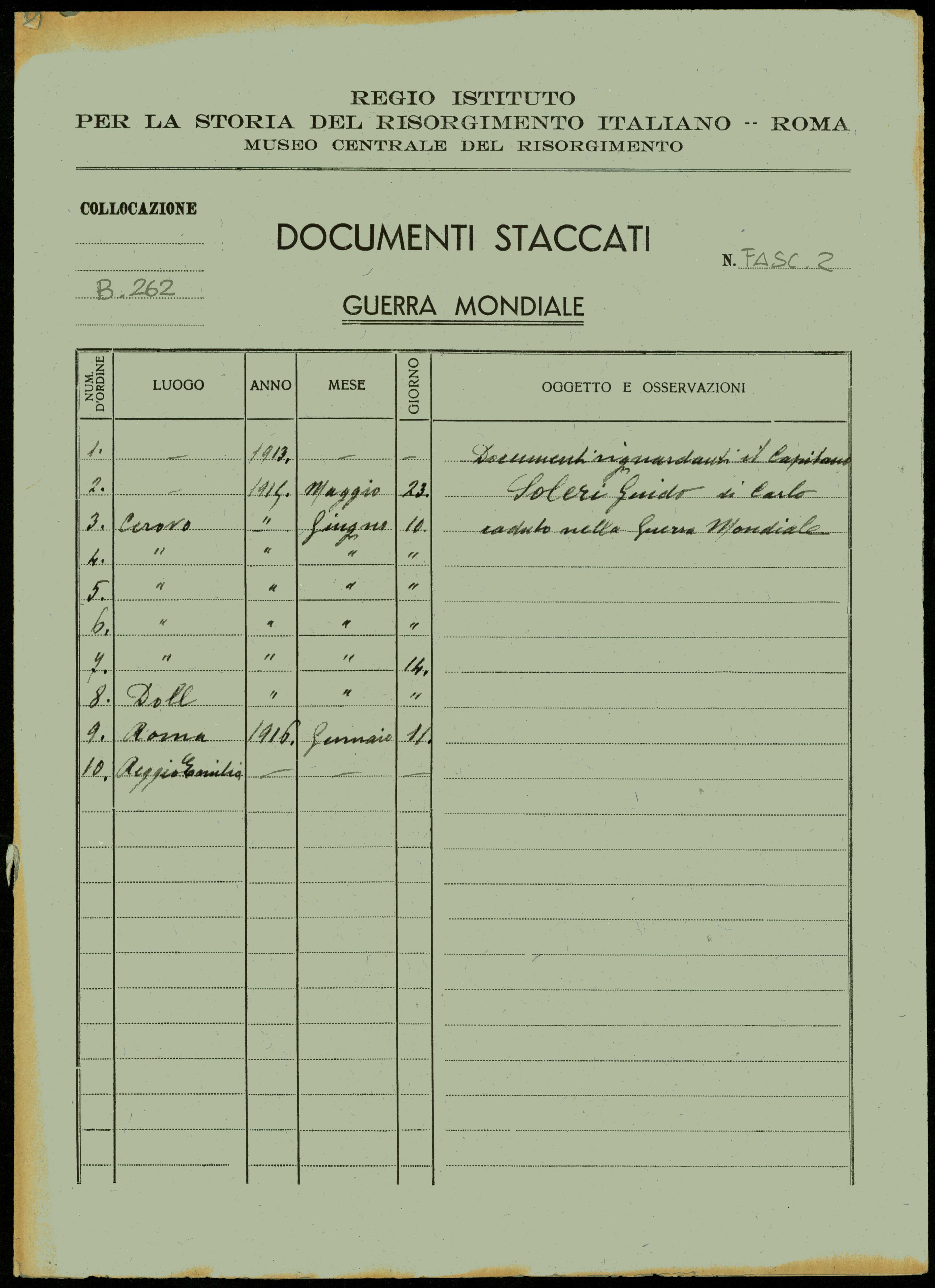 Istituto per la Storia del Risorgimento Italian.../Fondo caduti prima guerra mondiale/Sole Fortunato - Sorgente Pasquale/Soleri Guido, Fossano (Cuneo)