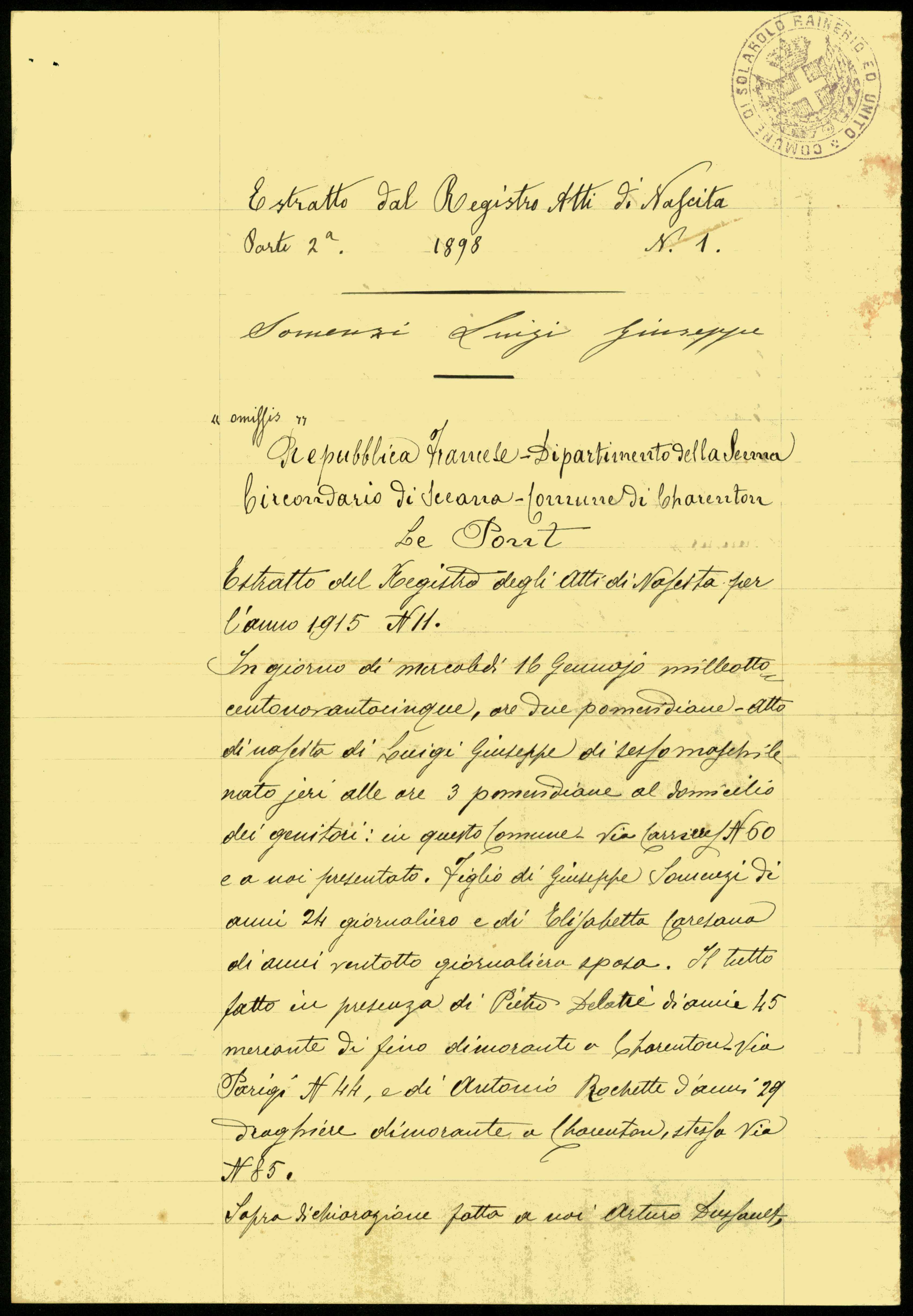 Documento: Somenzi Luigi, Solarolo Rainerio (Cremona)
