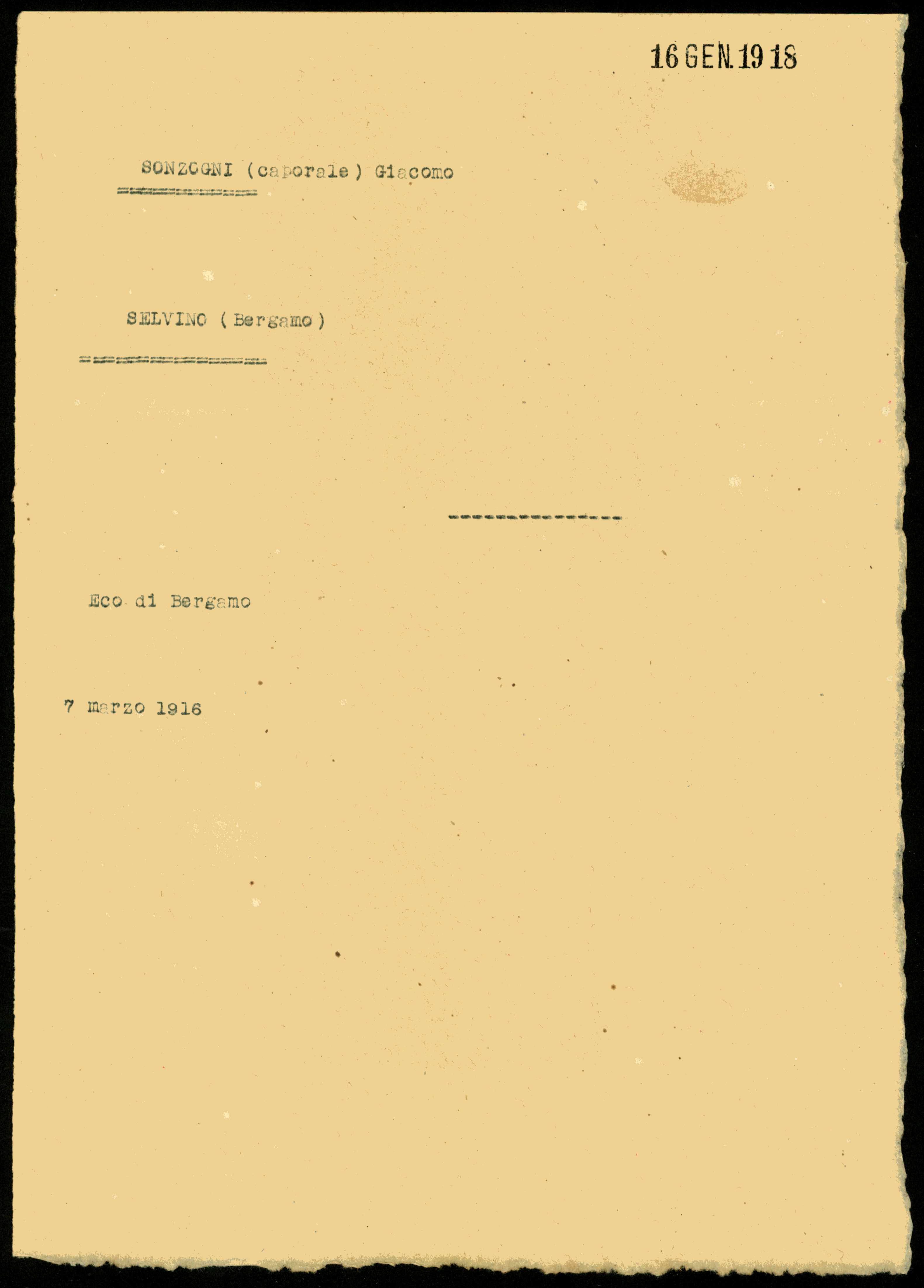 Documento: Sonzogni Giacomo, Selvino (Bergamo)
