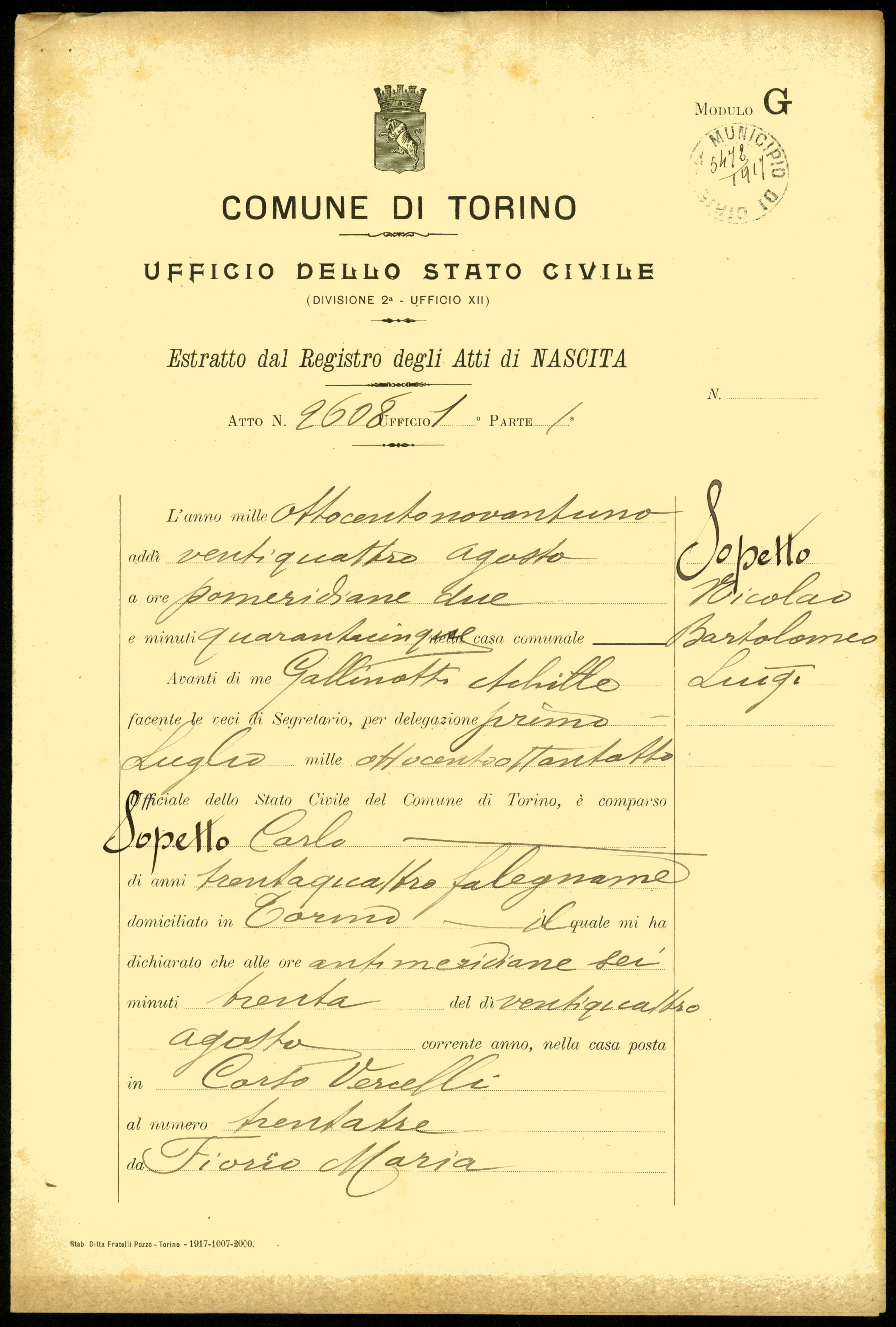 Istituto per la Storia del Risorgimento Italian.../Fondo caduti prima guerra mondiale/Sole Fortunato - Sorgente Pasquale/Sopetto Nicolao, Cirié (Torino)