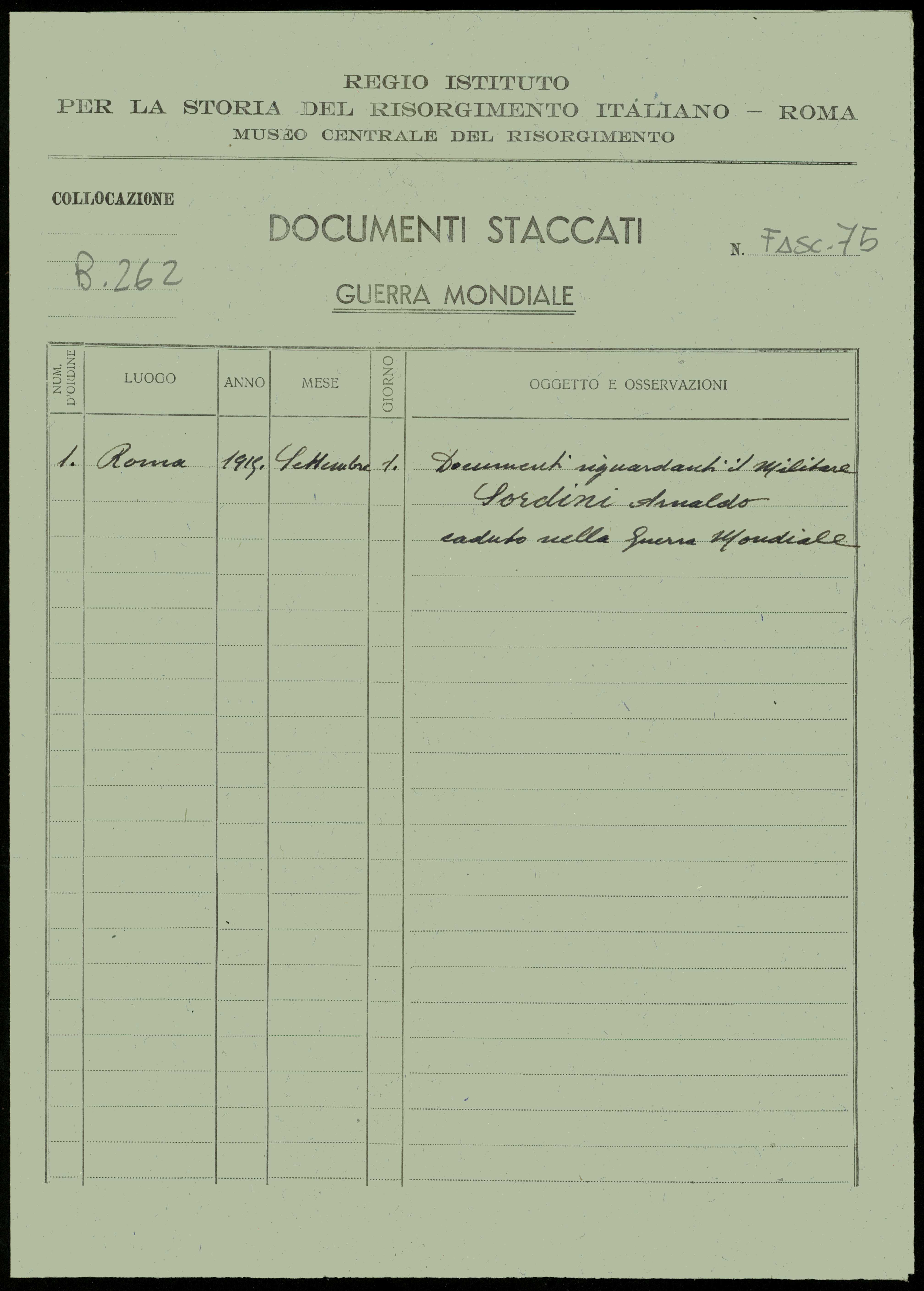Istituto per la Storia del Risorgimento Italian.../Fondo caduti prima guerra mondiale/Sole Fortunato - Sorgente Pasquale/Sordini Arnaldo, Ariccia (Roma)