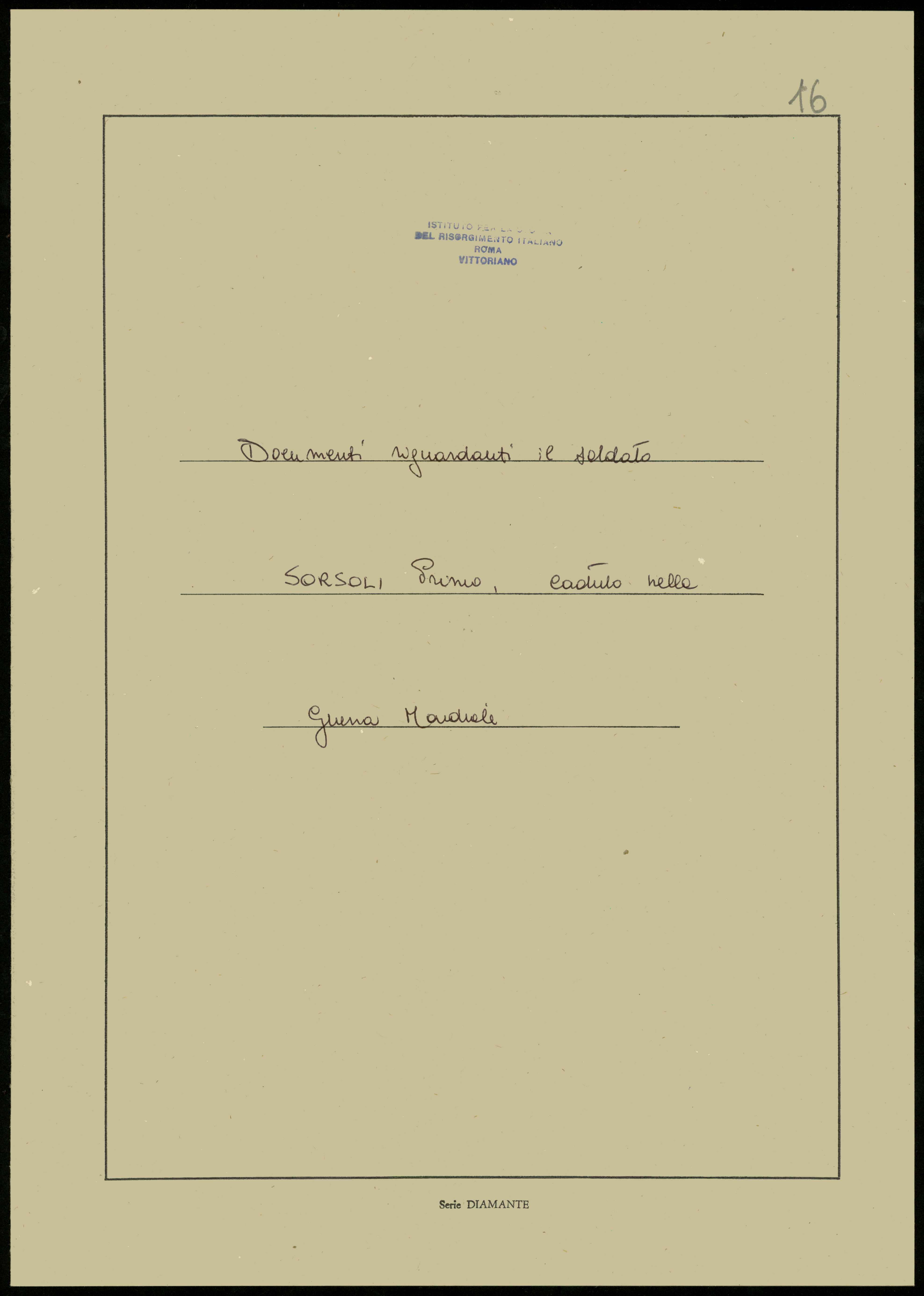 Istituto per la Storia del Risorgimento Italian.../Fondo caduti prima guerra mondiale/Soria Domenico - Spairani Giovanni Battista/Sorsoli Primo, Serle