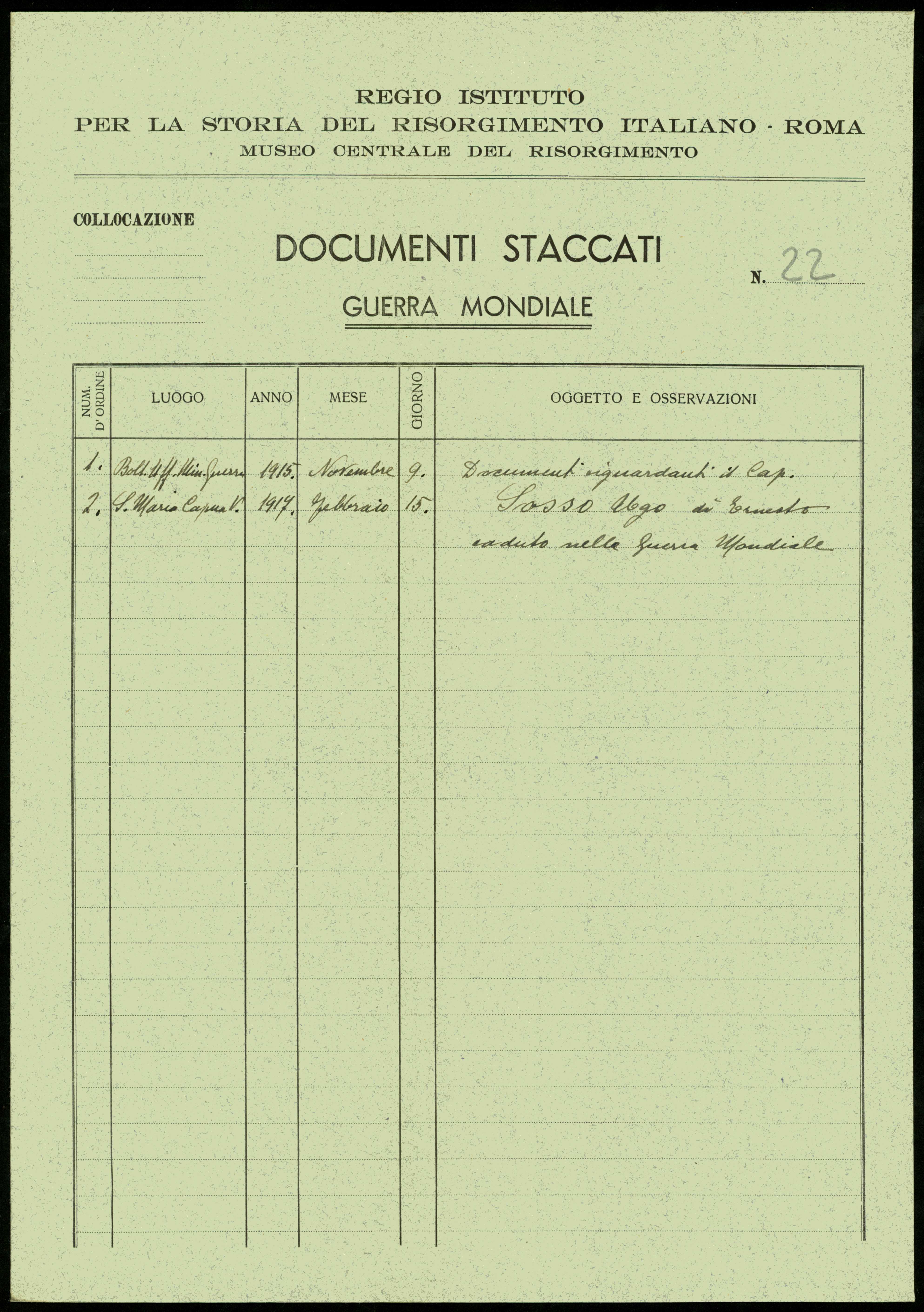 | Percorso: Istituto per la Storia del Risorgimento Italian.../Fondo caduti prima guerra mondiale/Soria Domenico - Spairani Giovanni Battista/Sosso Ugo, Santa Maria Capua Vetere | |||||||||||