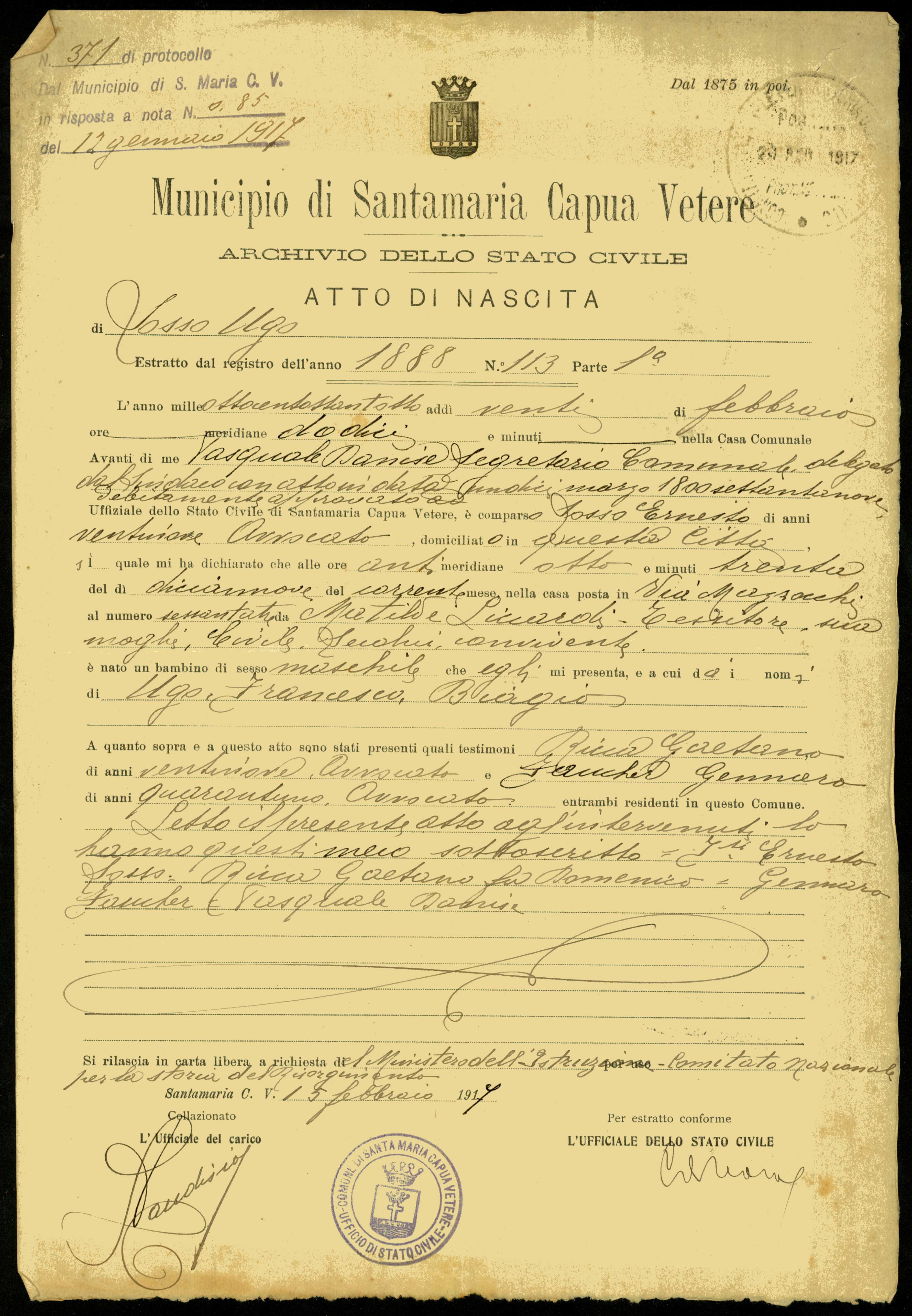 | Percorso: Istituto per la Storia del Risorgimento Italian.../Fondo caduti prima guerra mondiale/Soria Domenico - Spairani Giovanni Battista/Sosso Ugo, Santa Maria Capua Vetere | |||||||||||