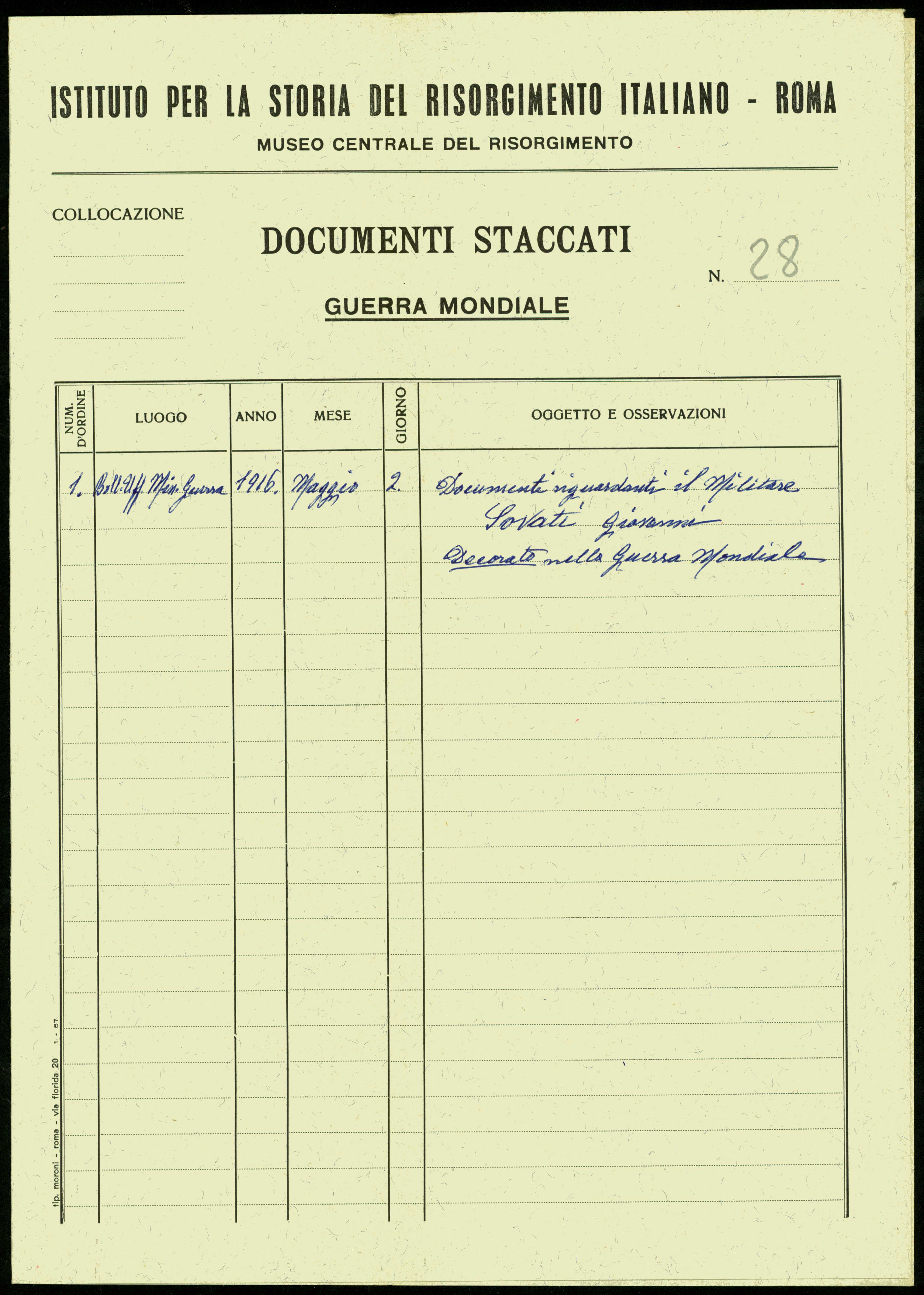 | Percorso: Istituto per la Storia del Risorgimento Italian.../Fondo caduti prima guerra mondiale/Soria Domenico - Spairani Giovanni Battista/Sovati Giovanni, Olevano di Lomellina (Pavia) | |||||||||||