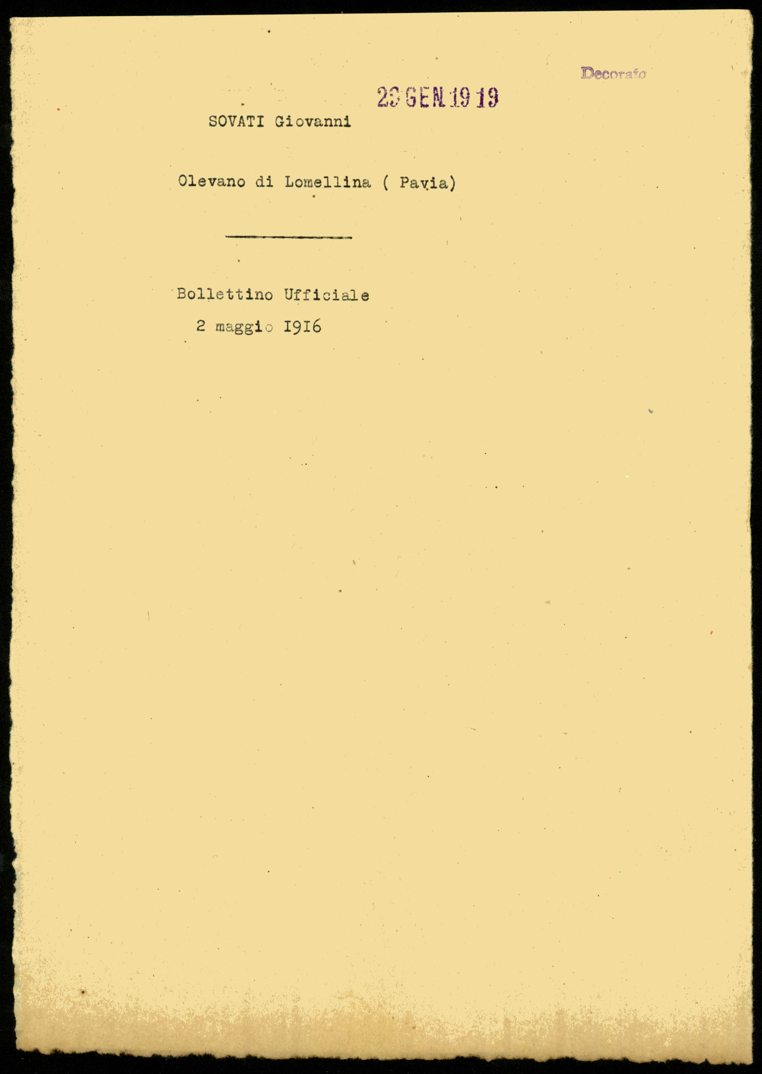Documento: Sovati Giovanni, Olevano di Lomellina (Pavia)