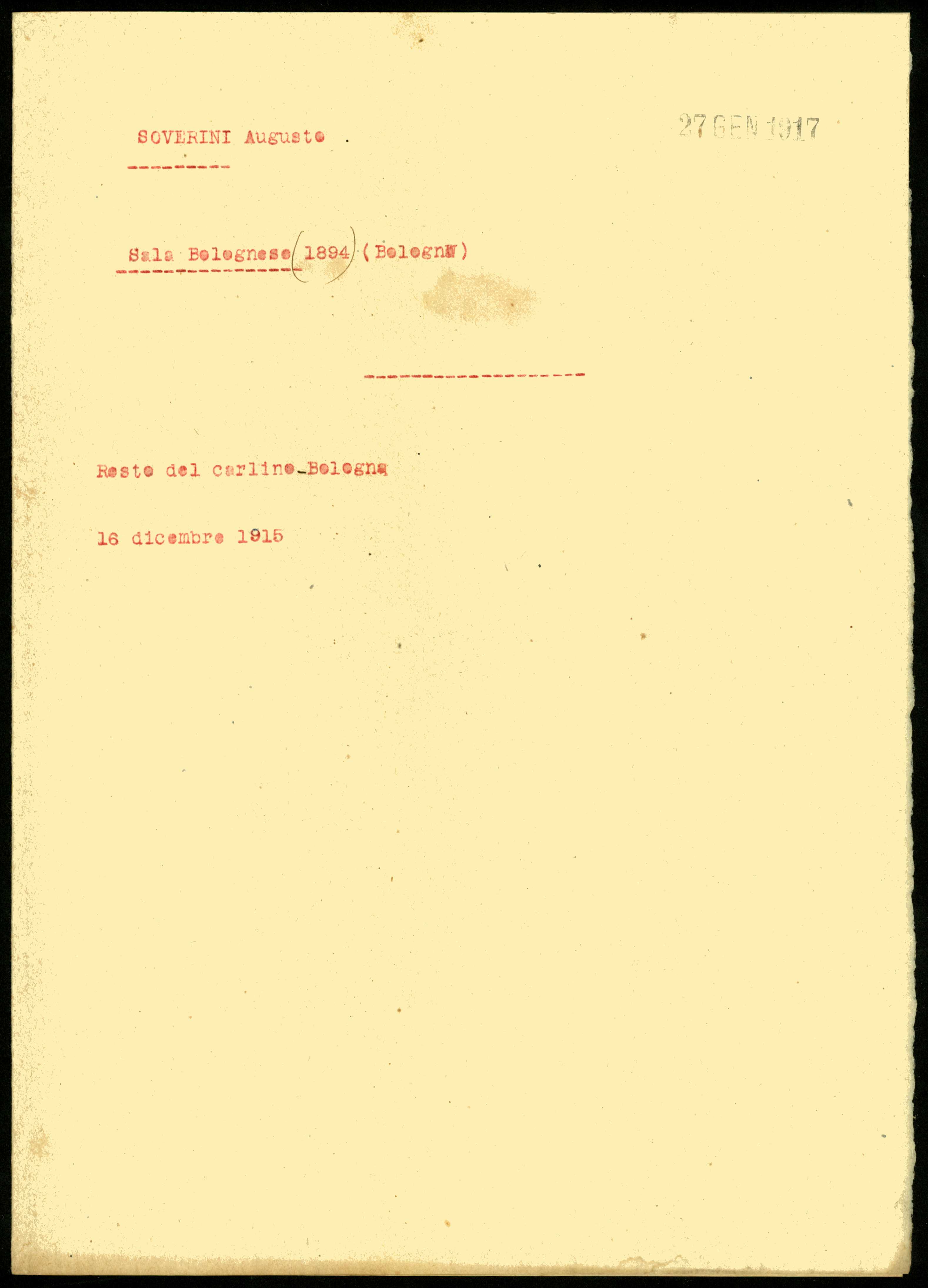 Percorso: Istituto per la Storia del Risorgimento Italian.../Fondo caduti prima guerra mondiale/Soria Domenico - Spairani Giovanni Battista/Soverini Augusto, Sala Bolognese (Bologna)