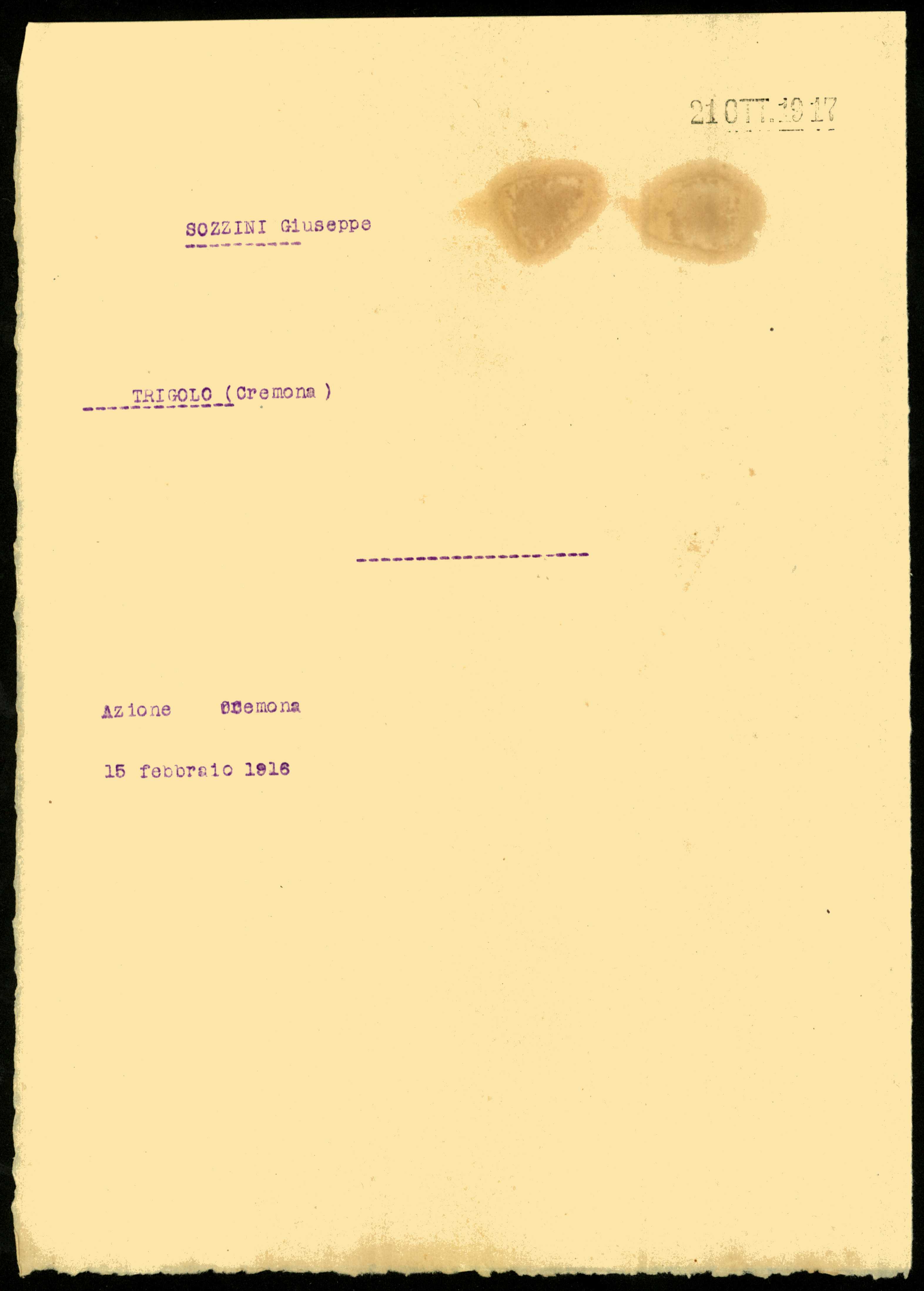 Documento: Sozzini Giuseppe, Trigolo (Cremona)