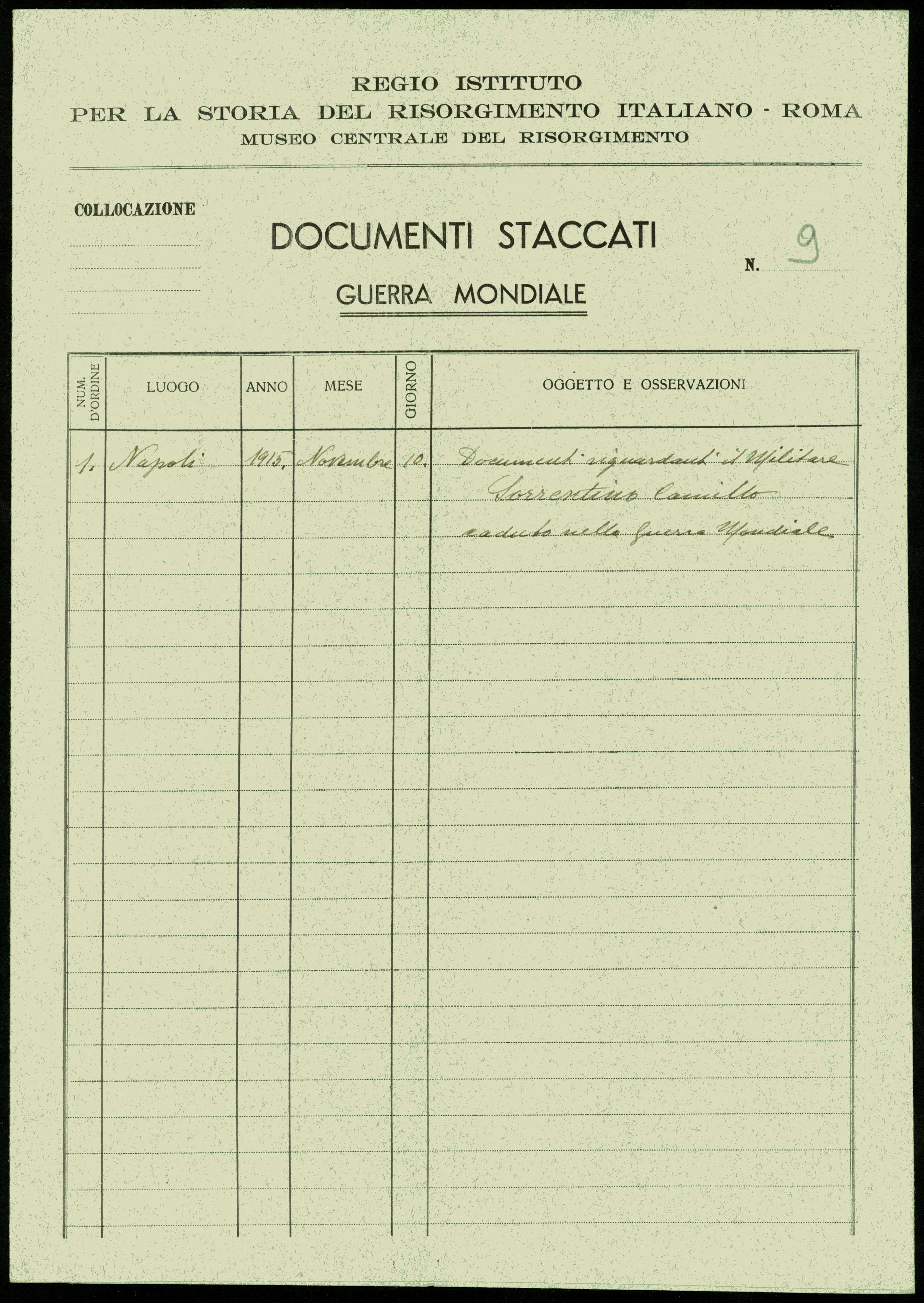 Istituto per la Storia del Risorgimento Italian.../Fondo caduti prima guerra mondiale/Soria Domenico - Spairani Giovanni Battista/Sorrentino Camillo