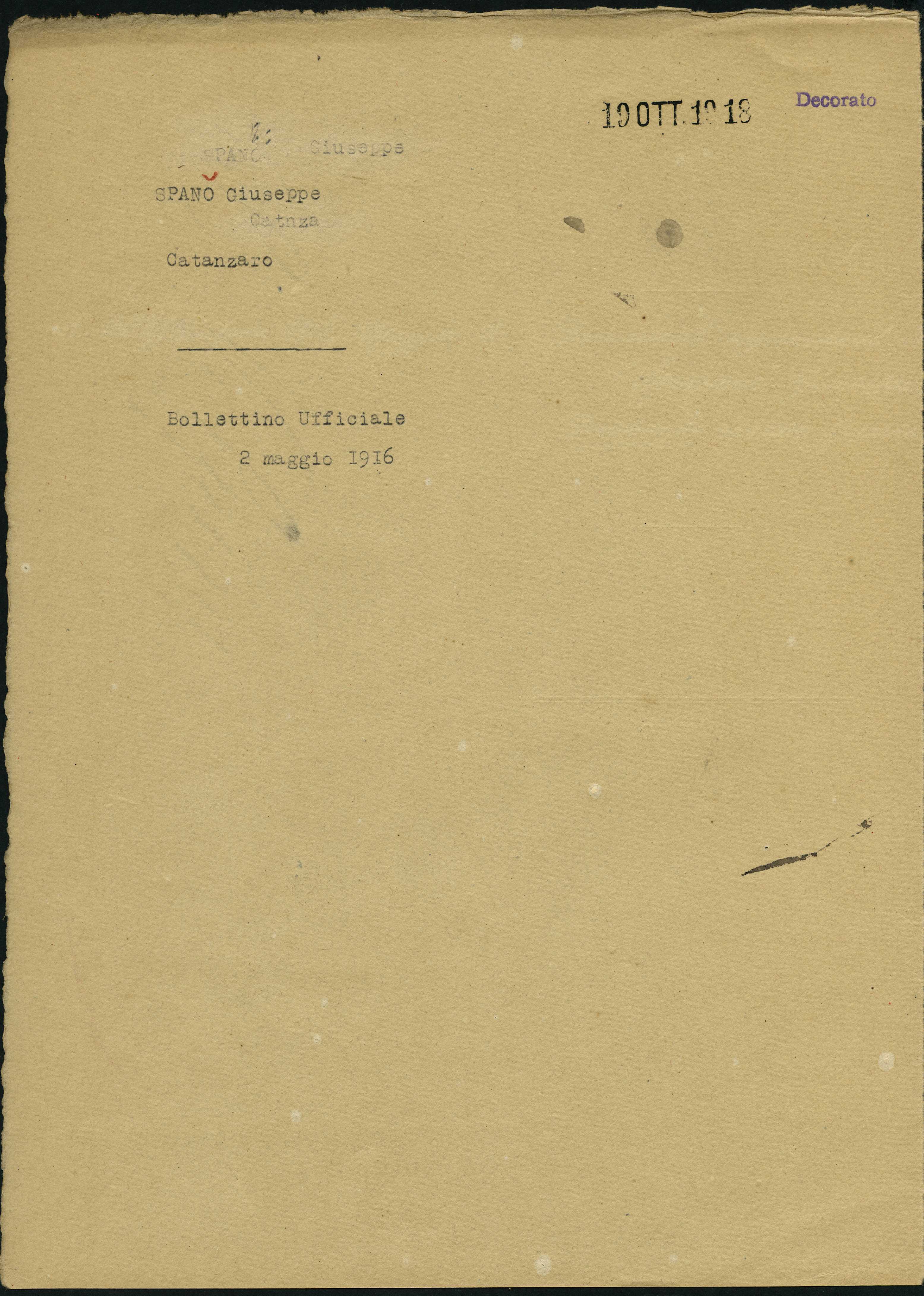 Istituto per la Storia del Risorgimento Italian.../Fondo caduti prima guerra mondiale/Spaliviero Francesco - Spilotti Pietro/Spanò Giuseppe, Catanzaro