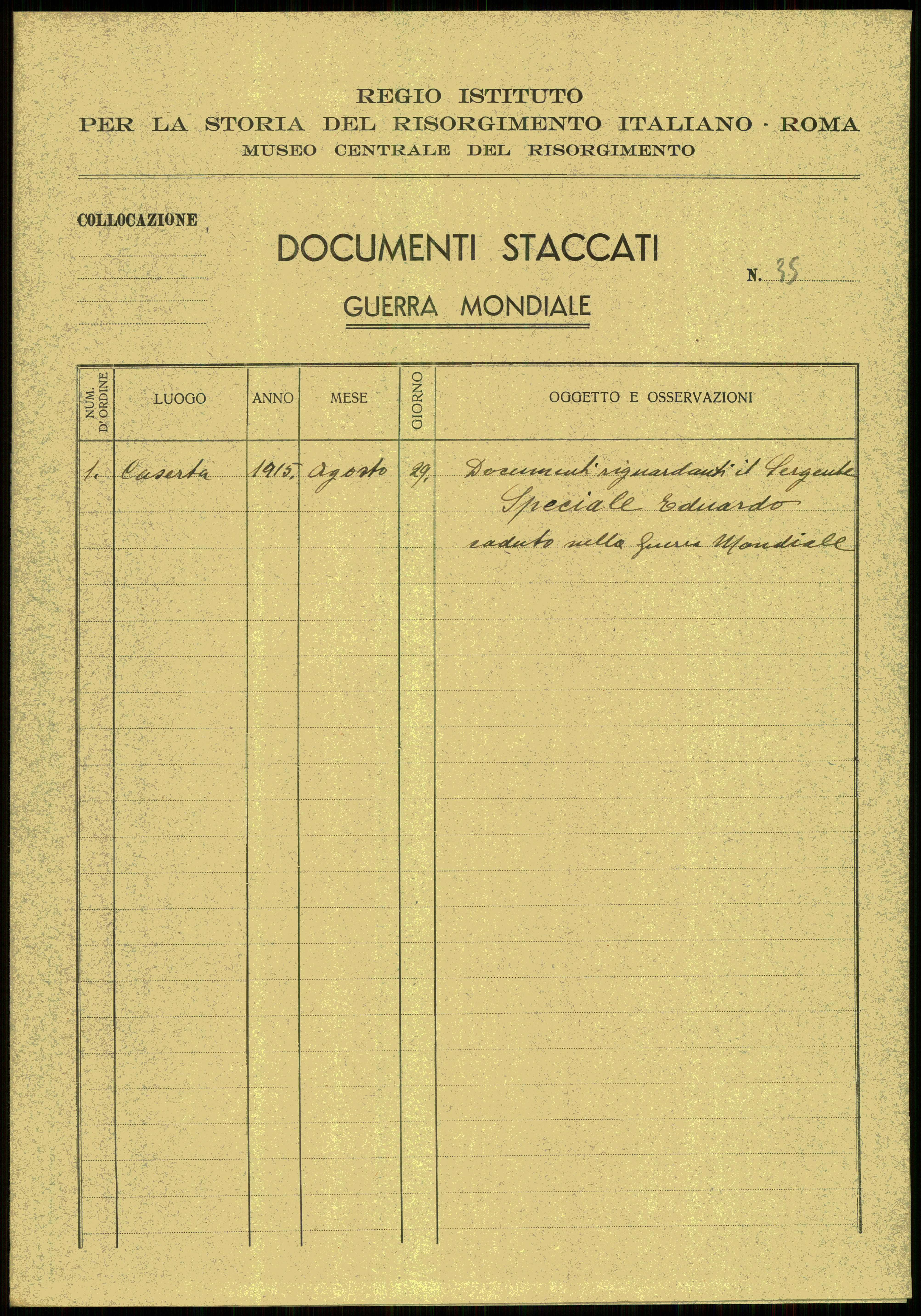 | Percorso: Istituto per la Storia del Risorgimento Italian.../Fondo caduti prima guerra mondiale/Spaliviero Francesco - Spilotti Pietro/Speciale Eduardo, Santa Maria Capua Vetere (Cas... | |||||||||||