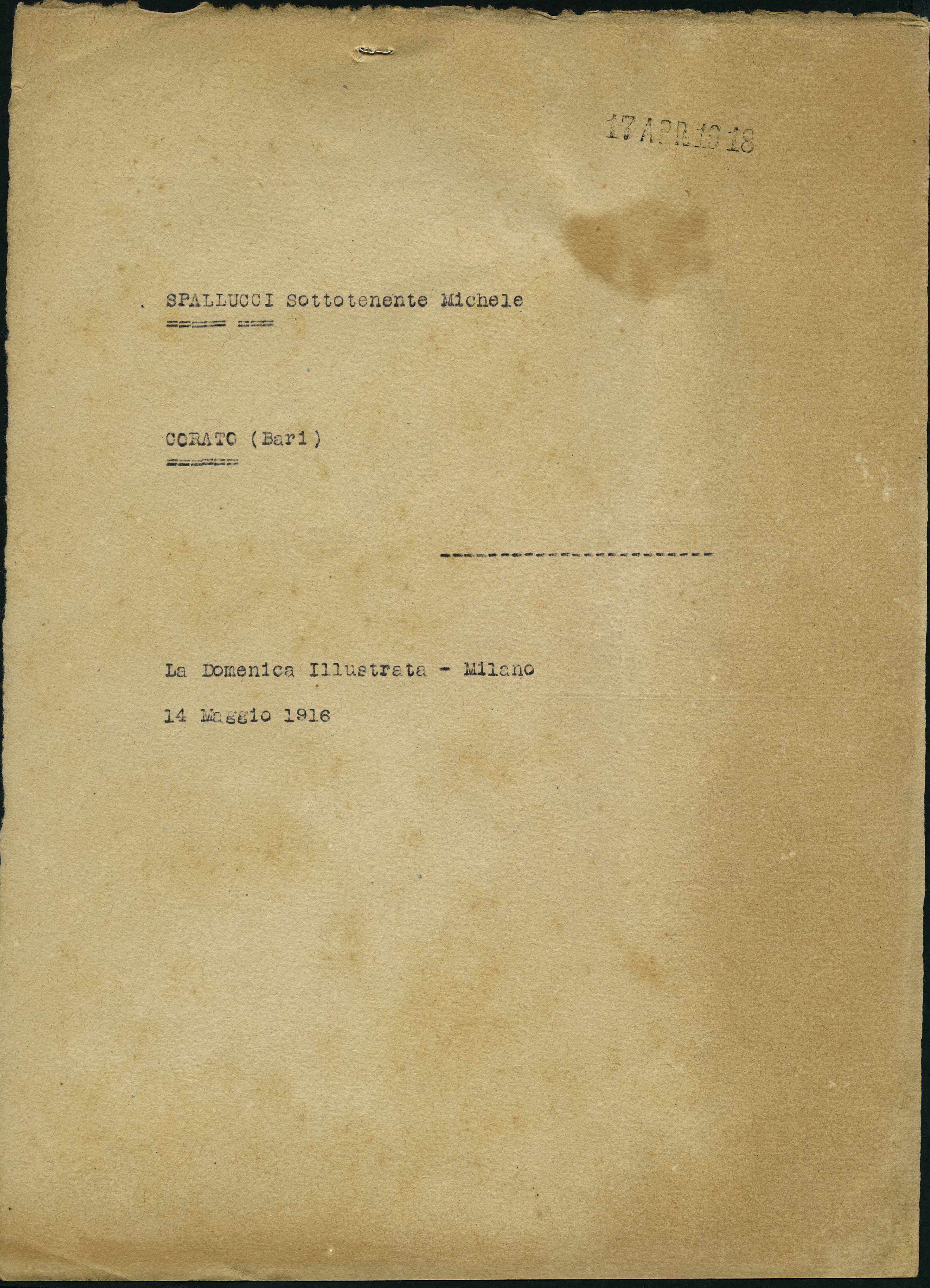 Percorso: Istituto per la Storia del Risorgimento Italian.../Fondo caduti prima guerra mondiale/Spaliviero Francesco - Spilotti Pietro/Spallucci Michele, Corato (Bari)