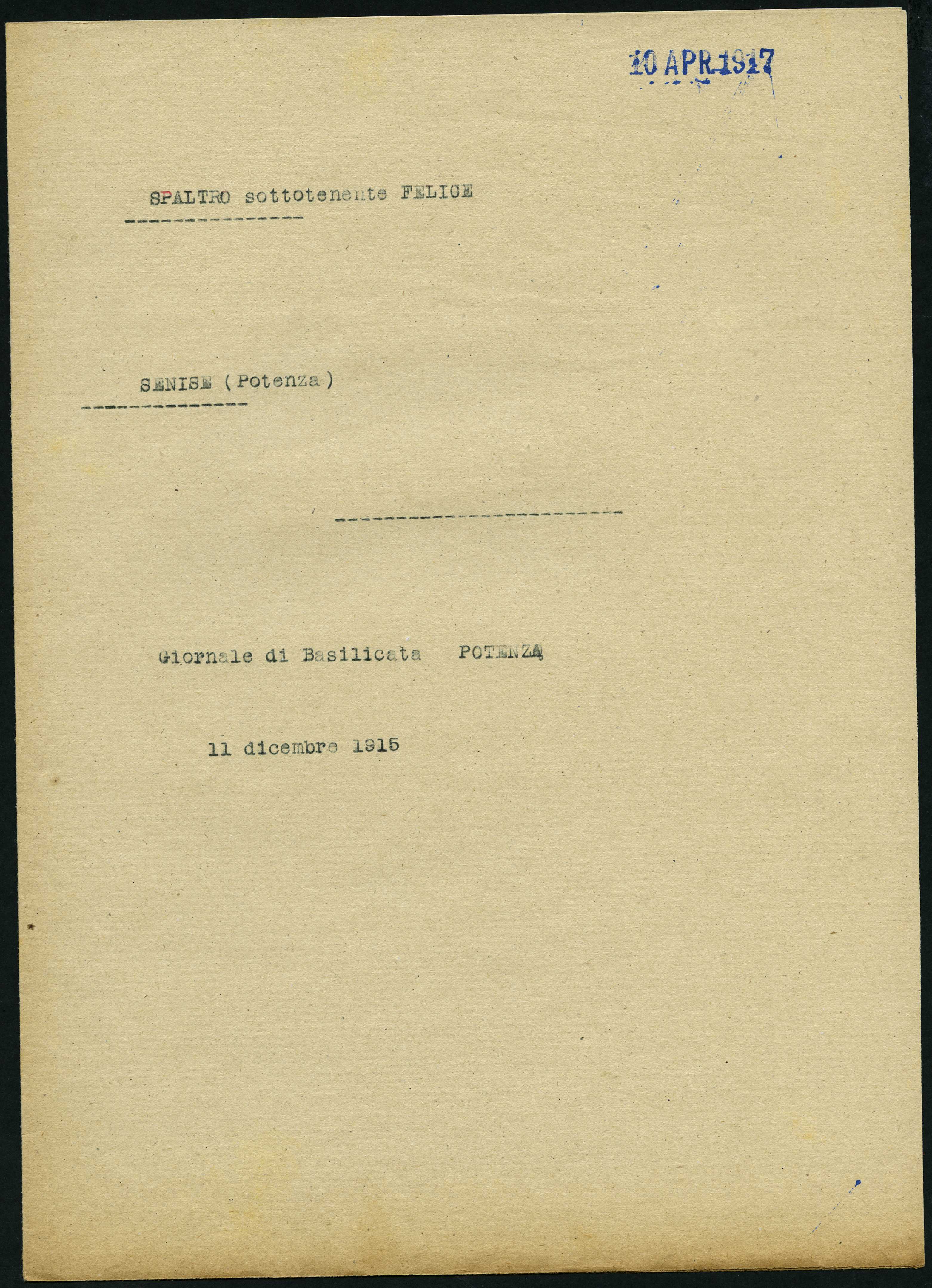 Percorso: Istituto per la Storia del Risorgimento Italian.../Fondo caduti prima guerra mondiale/Spaliviero Francesco - Spilotti Pietro/Spaltro Felice, Senise (Potenza)