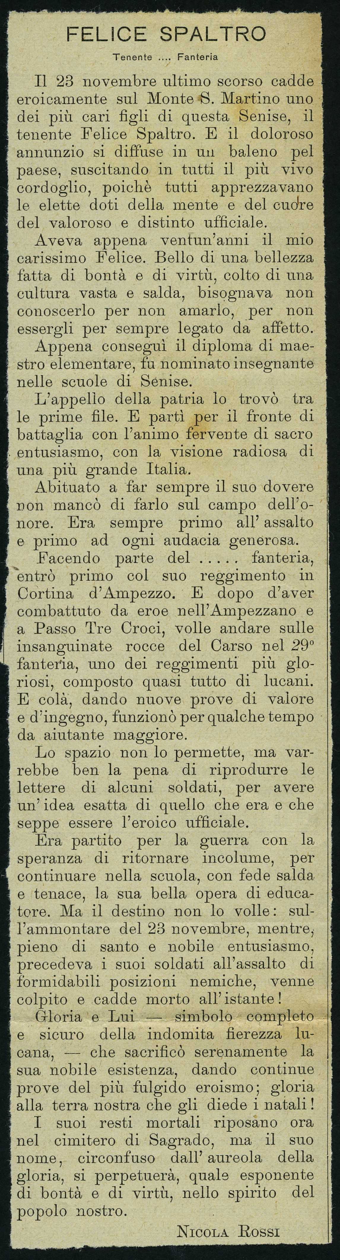 Percorso: Istituto per la Storia del Risorgimento Italian.../Fondo caduti prima guerra mondiale/Spaliviero Francesco - Spilotti Pietro/Spaltro Felice, Senise (Potenza)