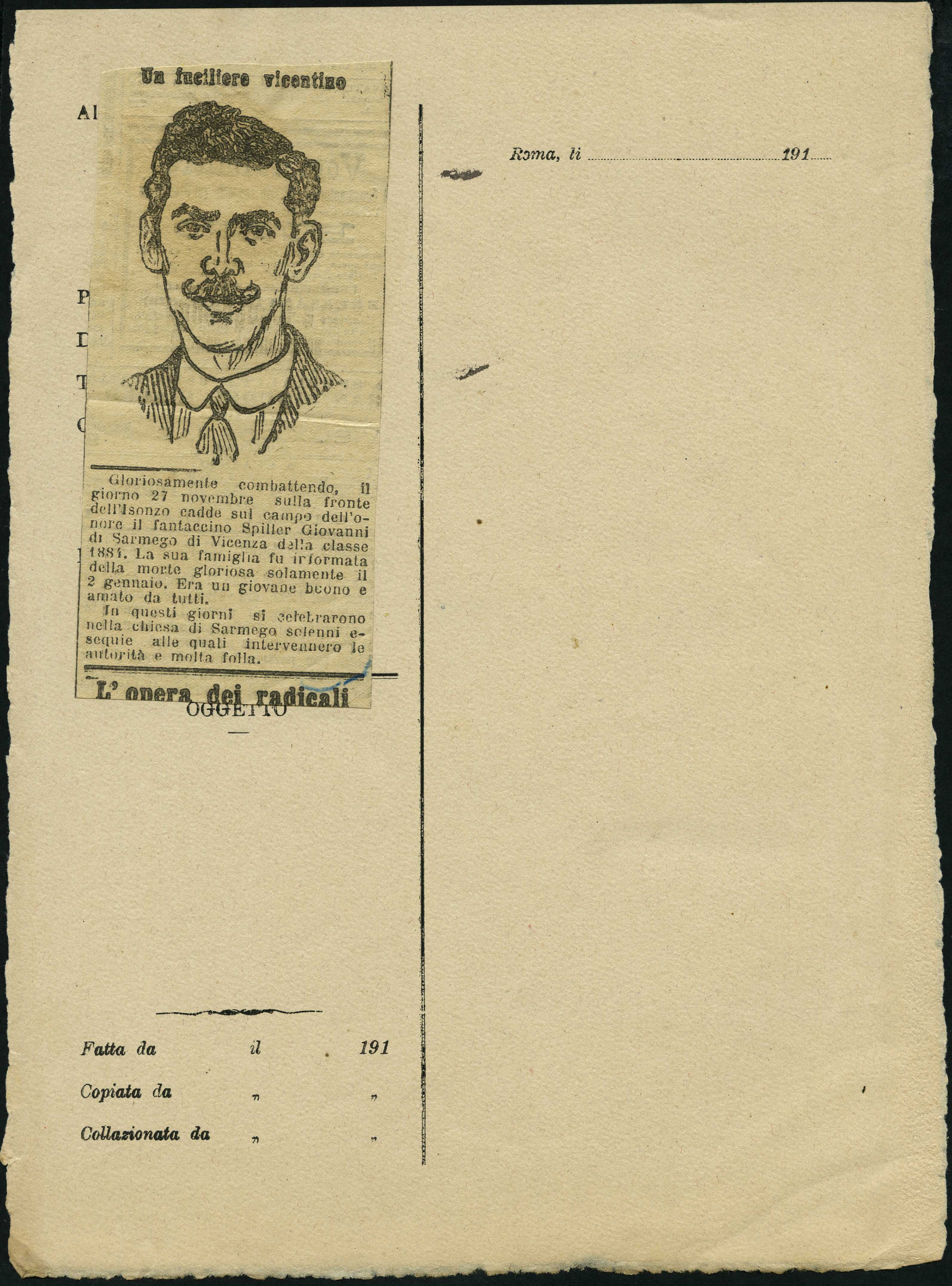 | Percorso: Istituto per la Storia del Risorgimento Italian.../Fondo caduti prima guerra mondiale/Spaliviero Francesco - Spilotti Pietro/Spiller Giovanni, Sarmego (Vicenza) | |||||||||||