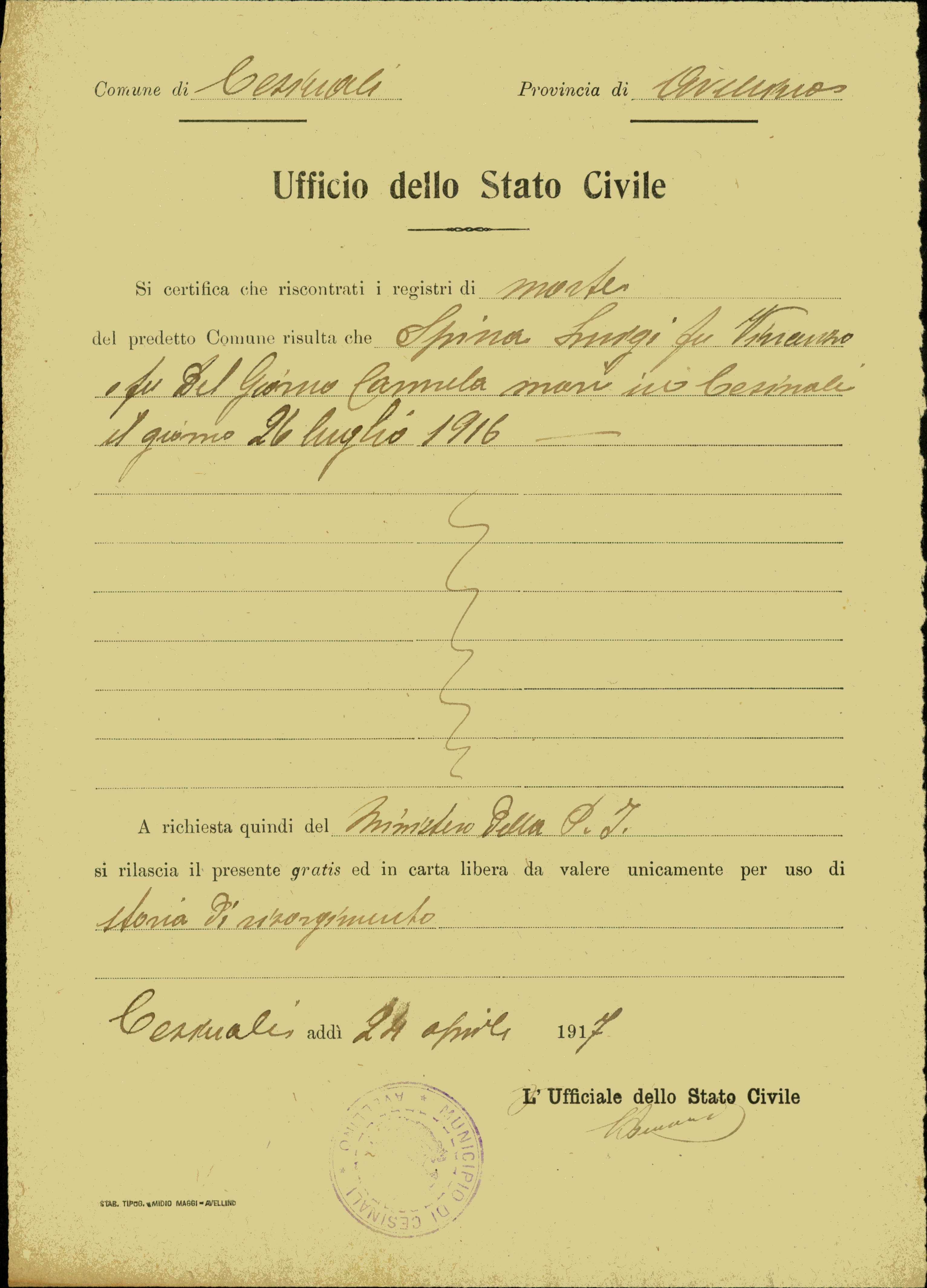 Spina Luigi, Cesinali (Avellino)