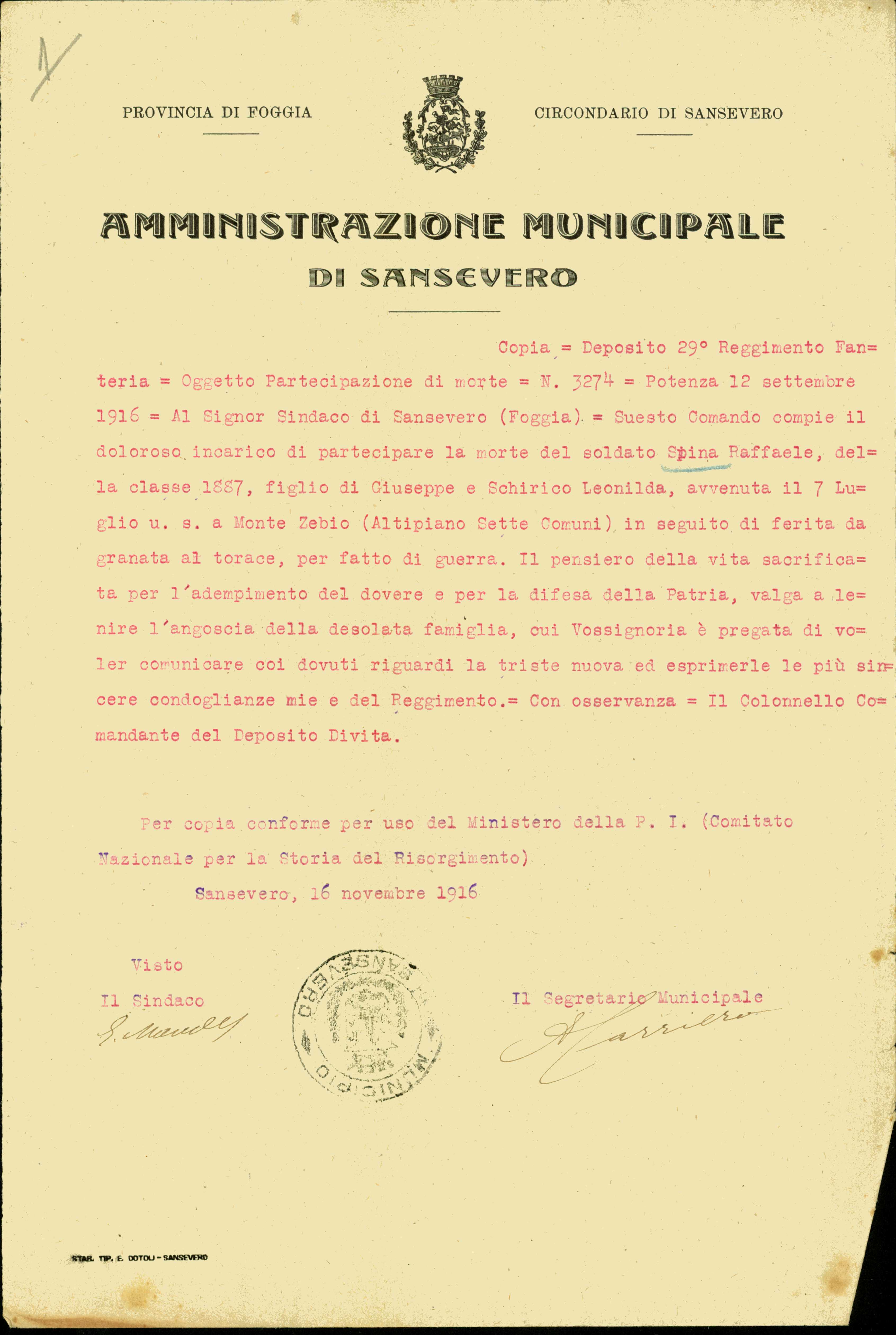 Istituto per la Storia del Risorgimento Italian.../Fondo caduti prima guerra mondiale/Spina Angelo - Squillari Giuseppe/Spina Raffaele, Cesinali (Avellino)