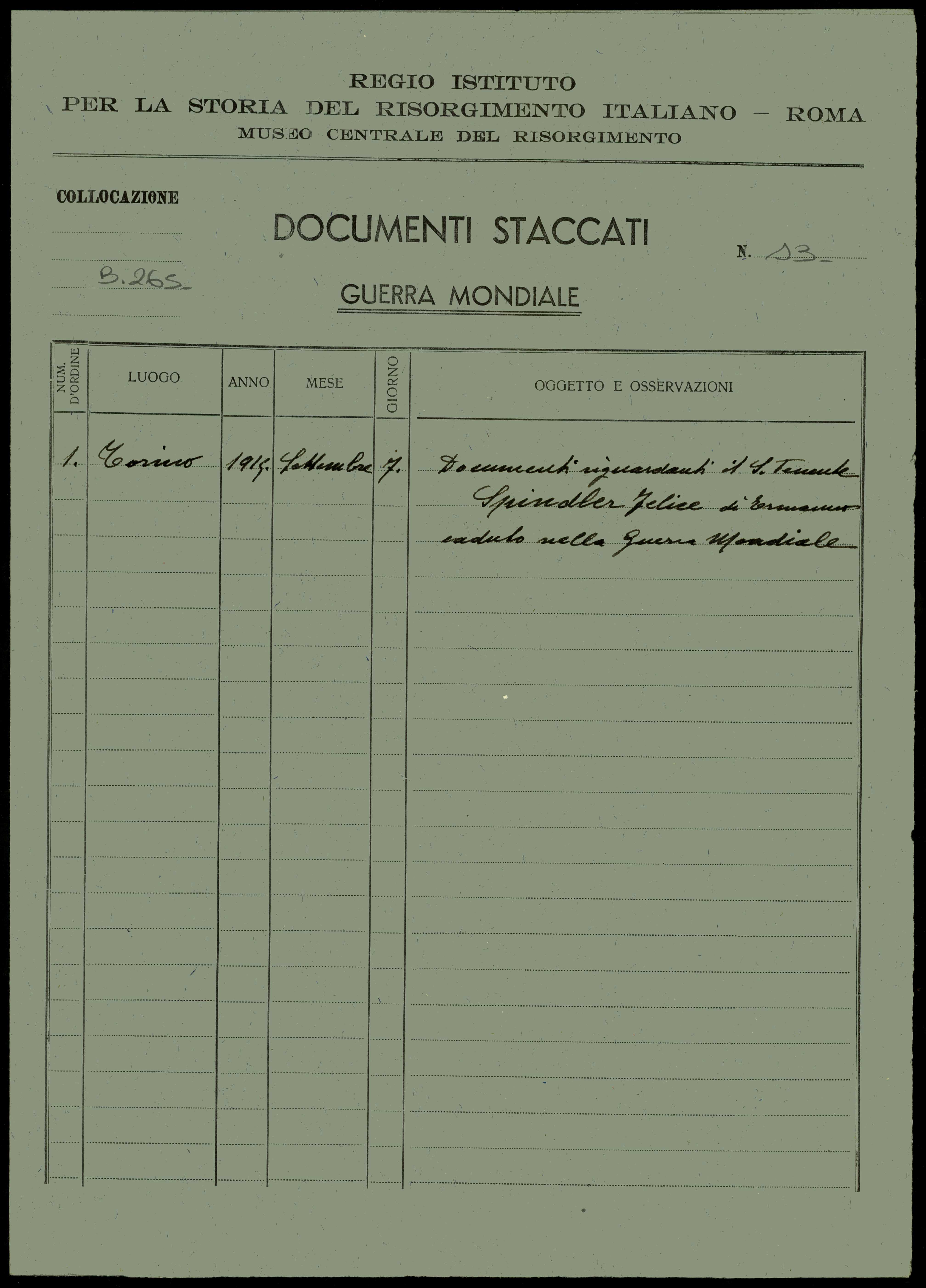 Istituto per la Storia del Risorgimento Italian.../Fondo caduti prima guerra mondiale/Spina Angelo - Squillari Giuseppe/Spindler Felice, Cardino (Como)