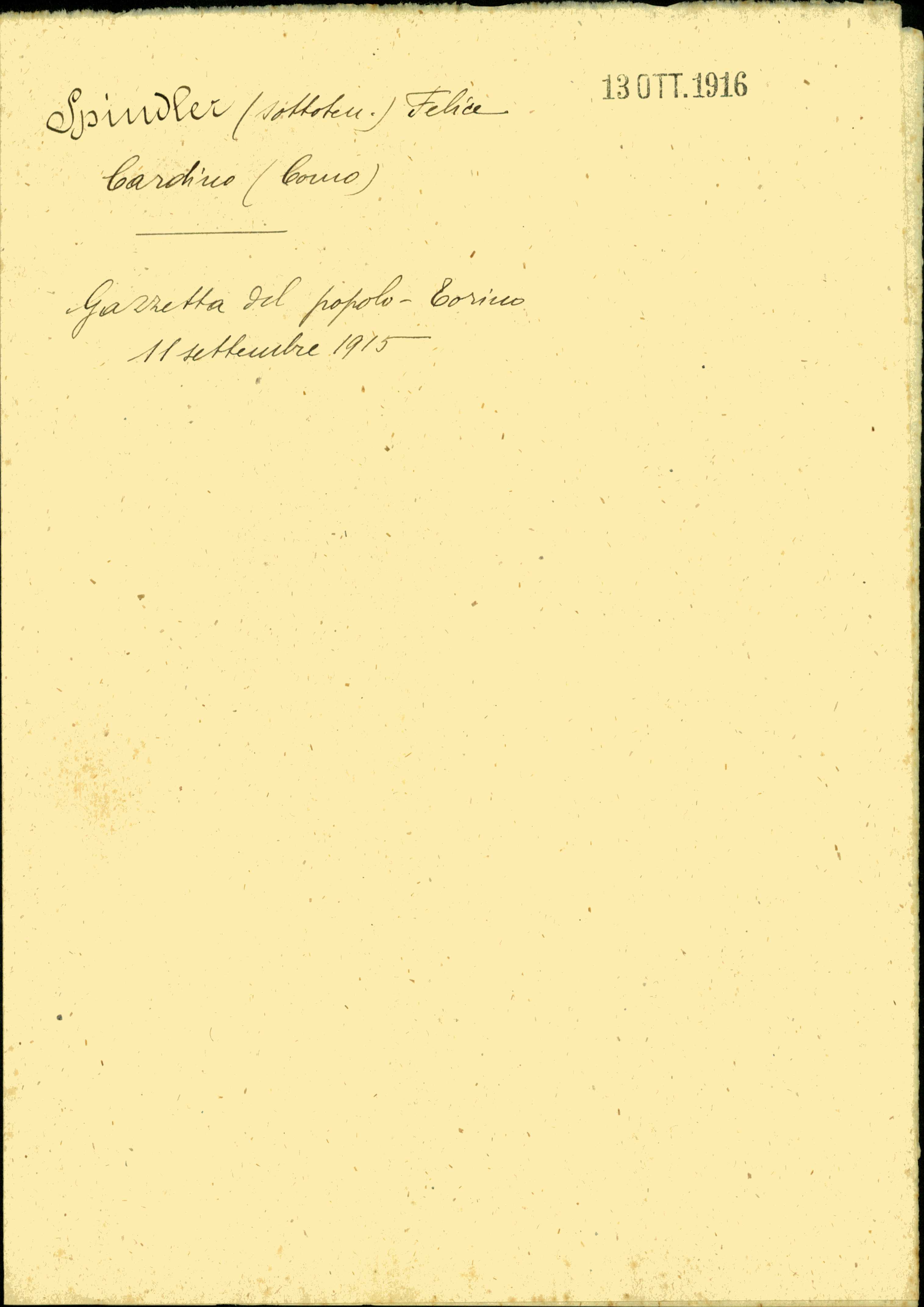 Istituto per la Storia del Risorgimento Italian.../Fondo caduti prima guerra mondiale/Spina Angelo - Squillari Giuseppe/Spindler Felice, Cardino (Como)