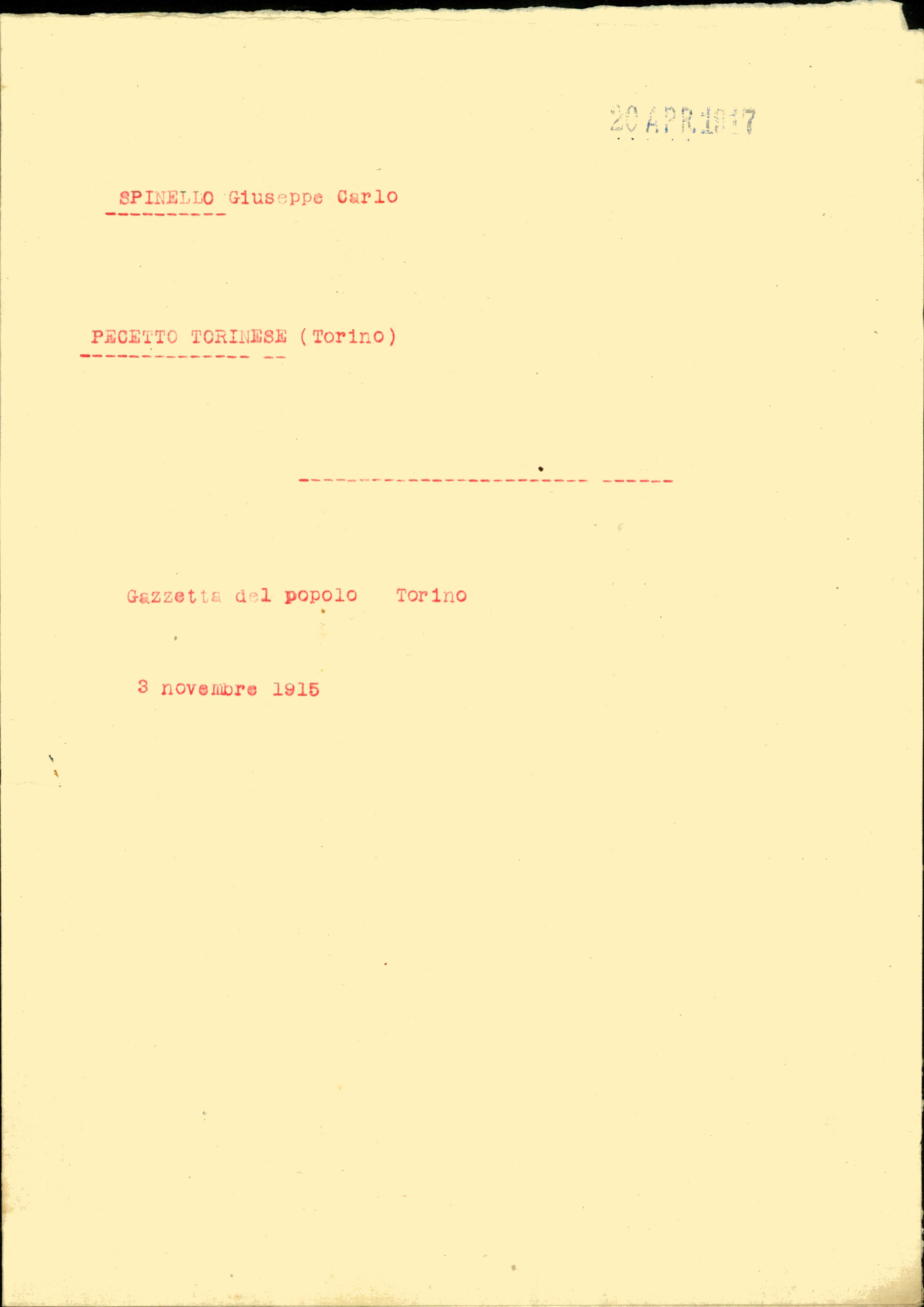 Documento: Spinello Giuseppe, Pecetto Torinese (Torino)