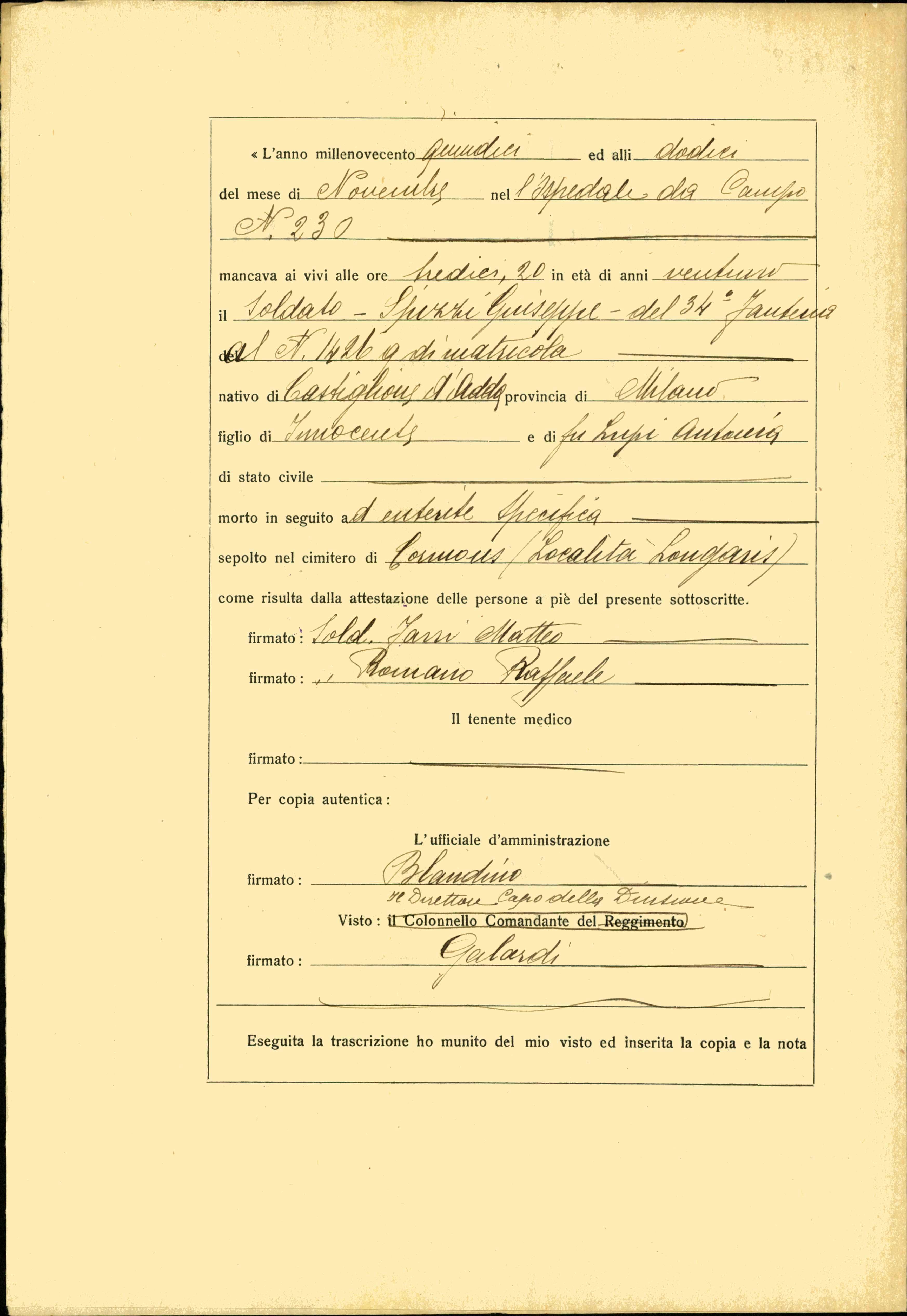 Percorso: Istituto per la Storia del Risorgimento Italian.../Fondo caduti prima guerra mondiale/Spina Angelo - Squillari Giuseppe/Spizzi Giuseppe, Castiglione d'Adda (Milano)