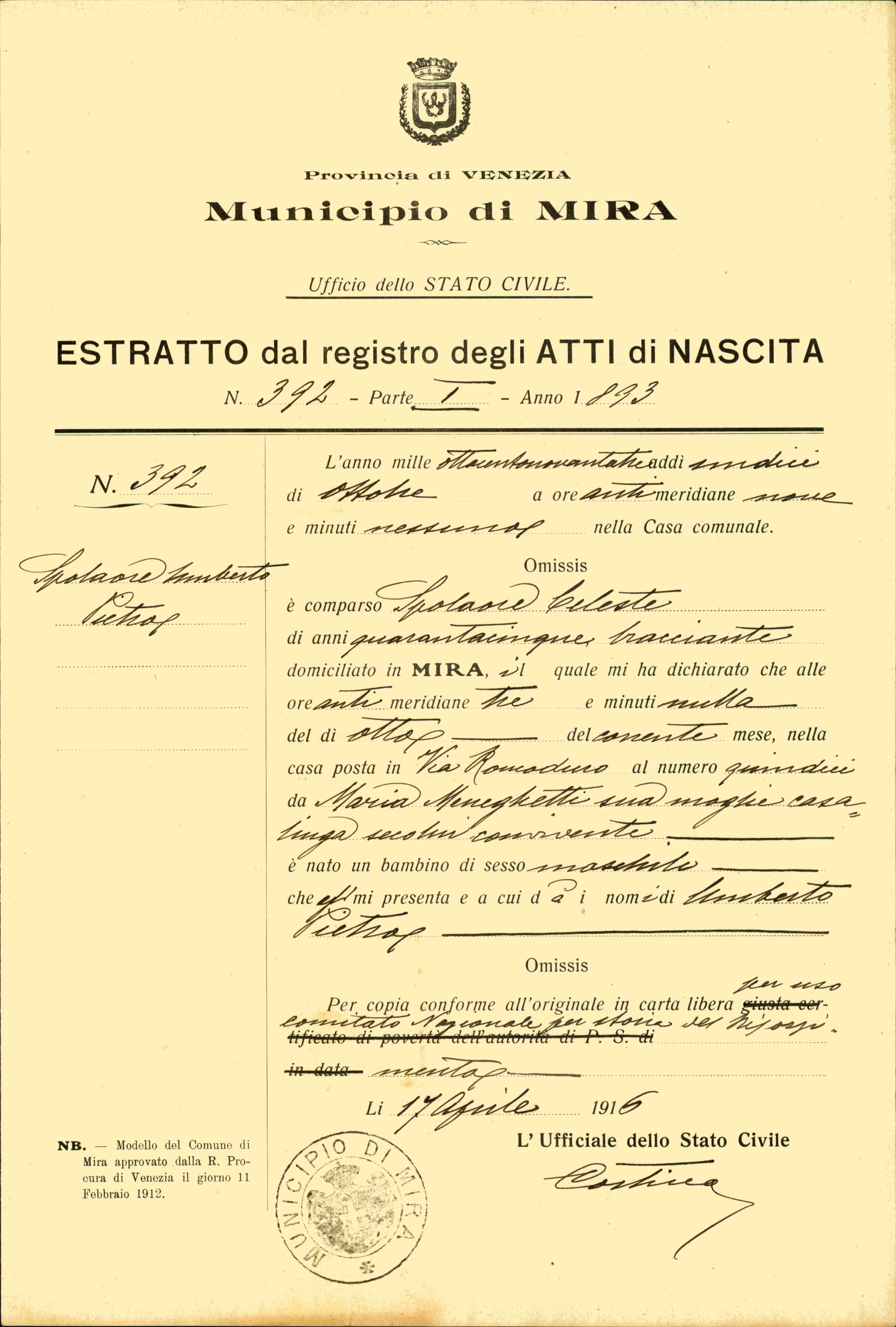 Splendore Umberto, Mira (Venezia)