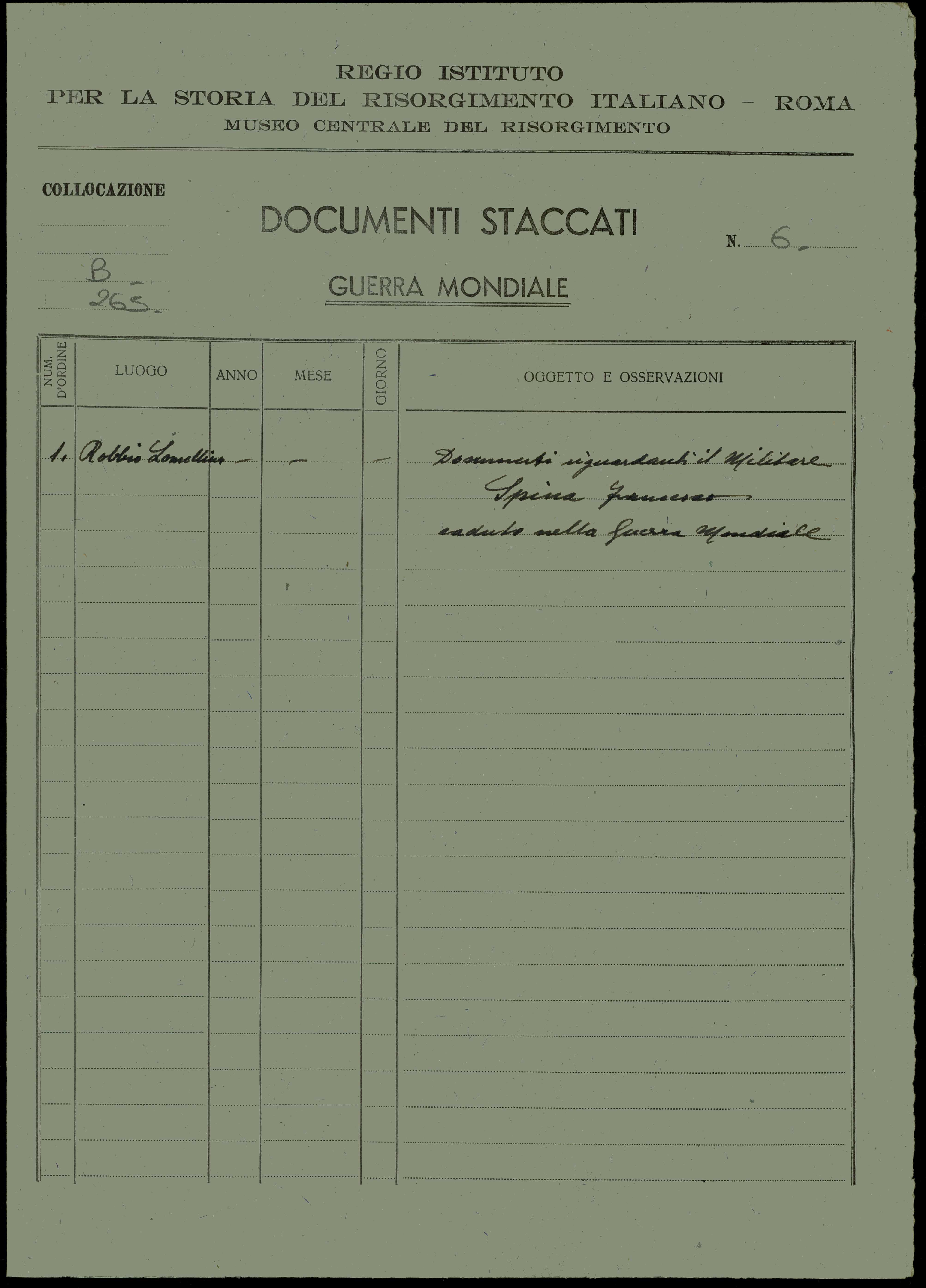 | Percorso: Istituto per la Storia del Risorgimento Italian.../Fondo caduti prima guerra mondiale/Spina Angelo - Squillari Giuseppe/Spina Francesco, Robbio Lomellina (Pavia) | |||||||||||