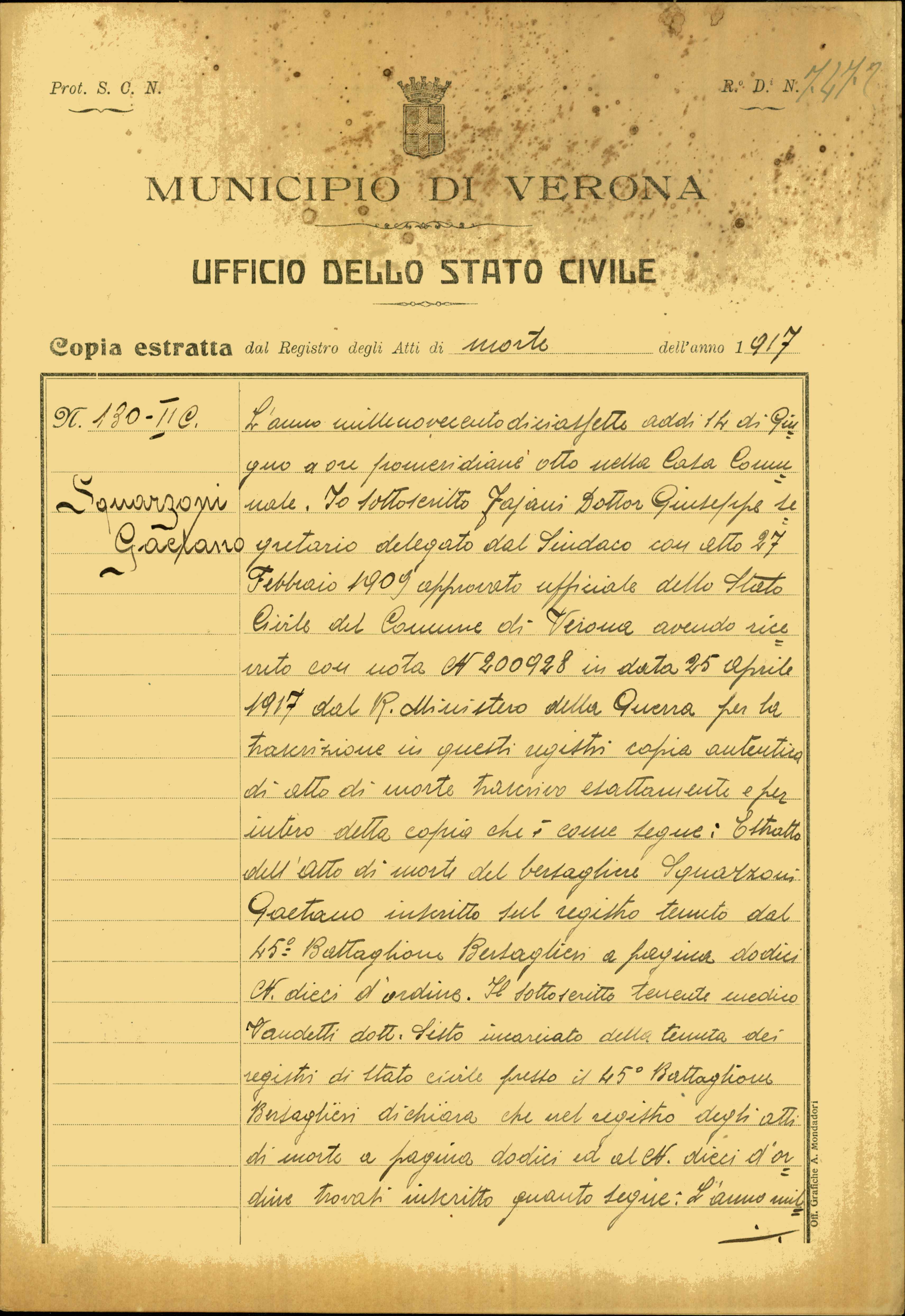 Istituto per la Storia del Risorgimento Italian.../Fondo caduti prima guerra mondiale/Spina Angelo - Squillari Giuseppe/Squarzoni Gaetano, Lazise (Verona)