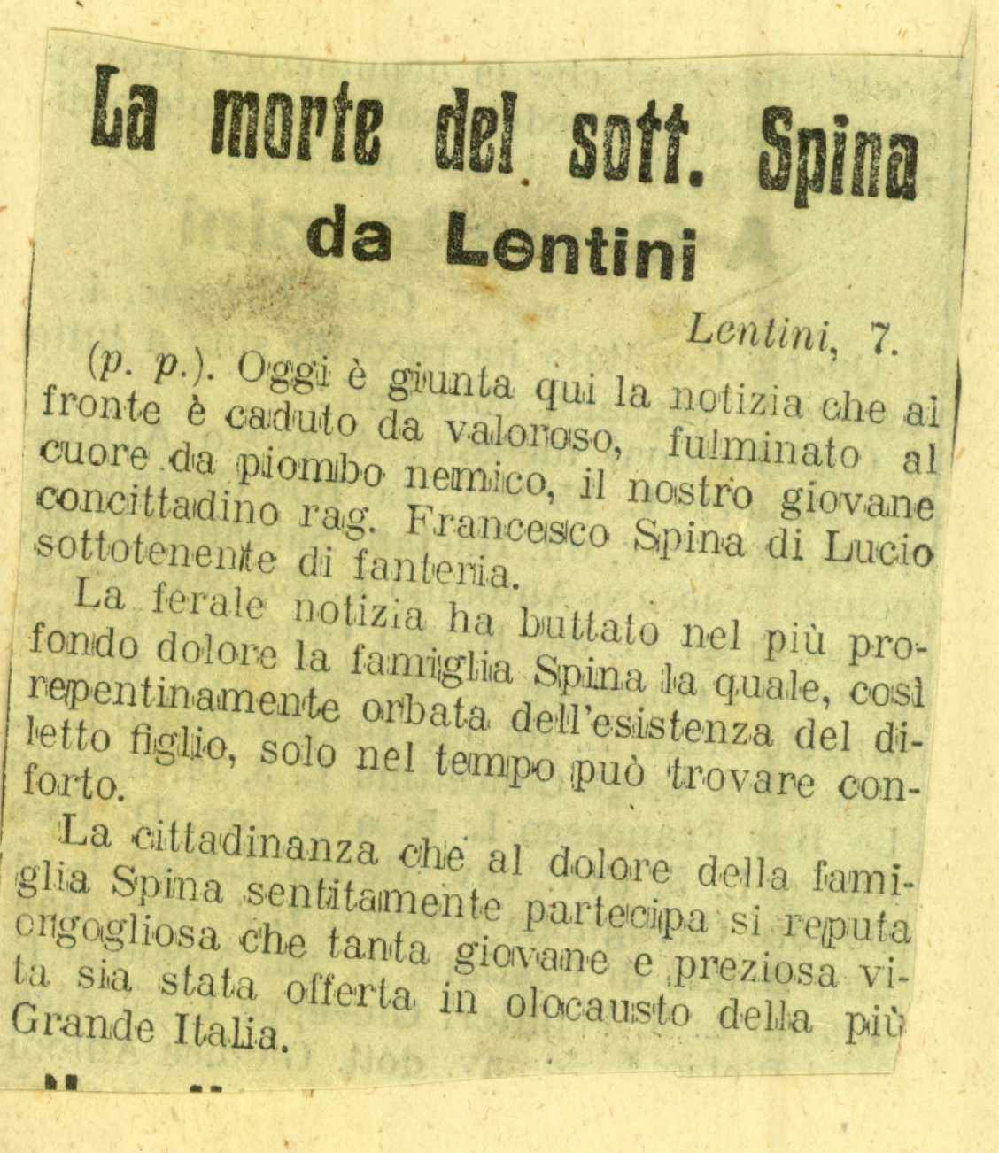Istituto per la Storia del Risorgimento Italian.../Fondo caduti prima guerra mondiale/Spina Angelo - Squillari Giuseppe/Spina Francesco, Lentini (Siracusa)