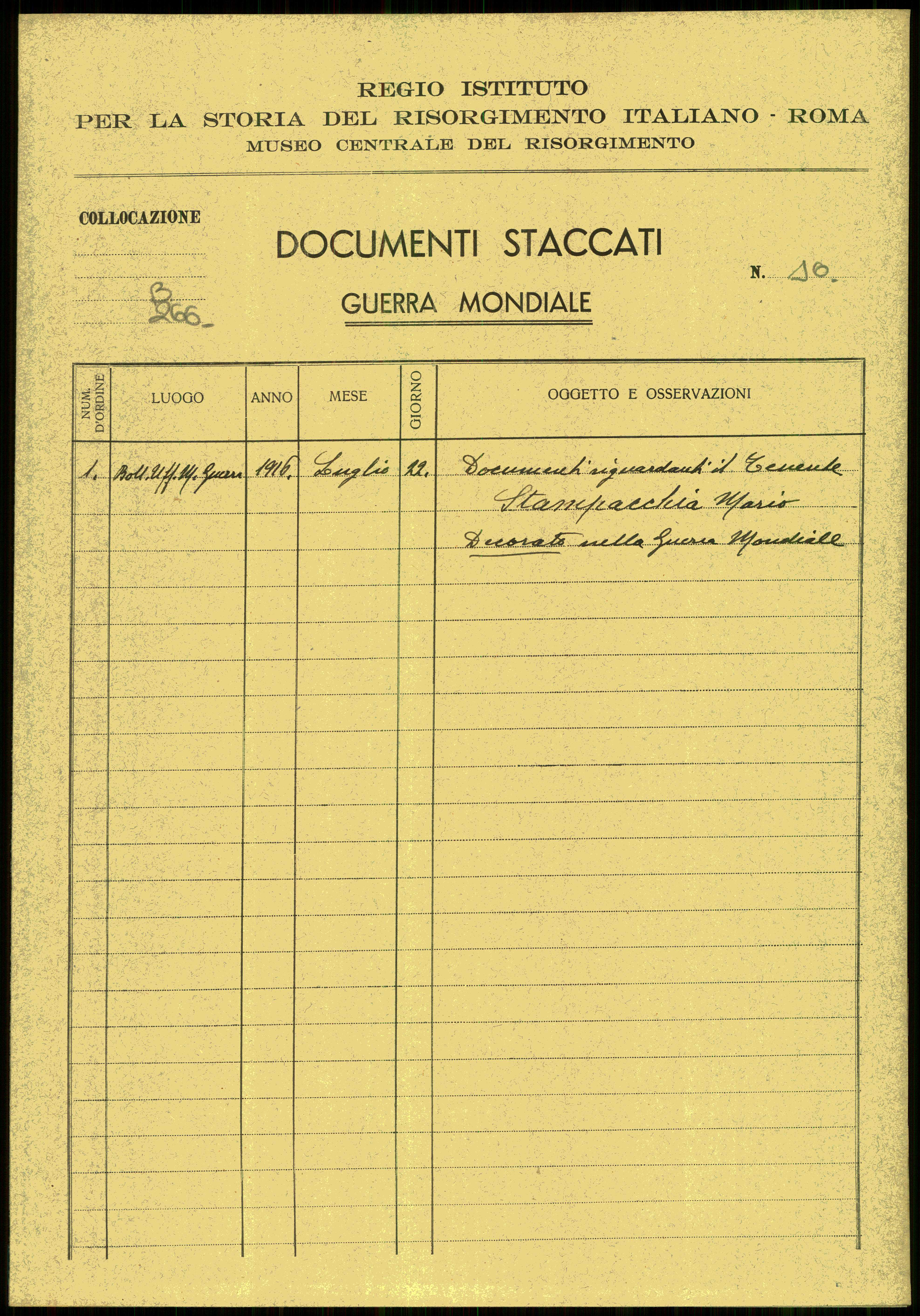 Istituto per la Storia del Risorgimento Italian.../Fondo caduti prima guerra mondiale/Stabile Michelino - Stefani Natale/Stampacchia Mario, Bologna