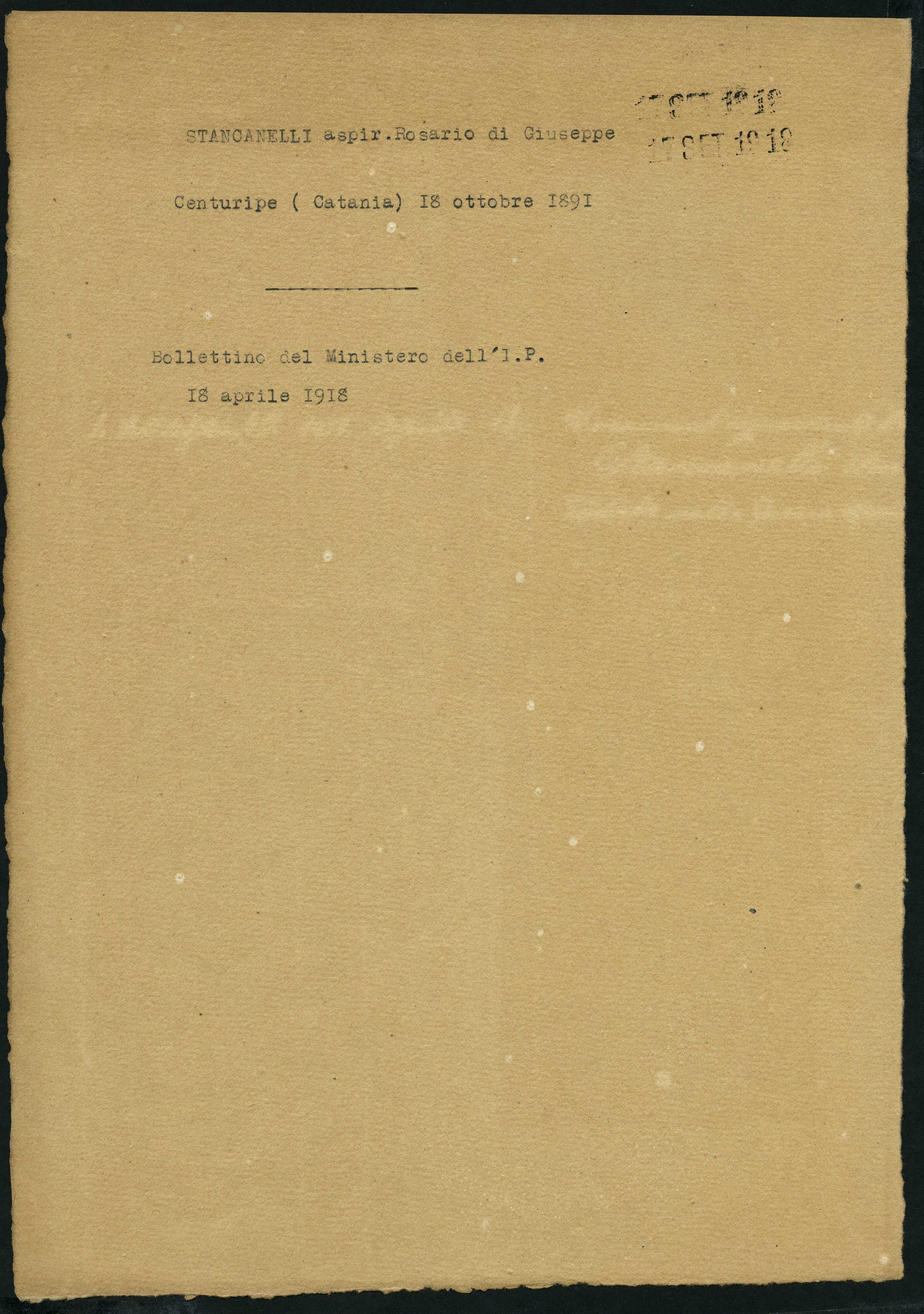 | Percorso: Istituto per la Storia del Risorgimento Italian.../Fondo caduti prima guerra mondiale/Stabile Michelino - Stefani Natale/Stancanelli Rosario, Centuripe (Catania) | |||||||||||