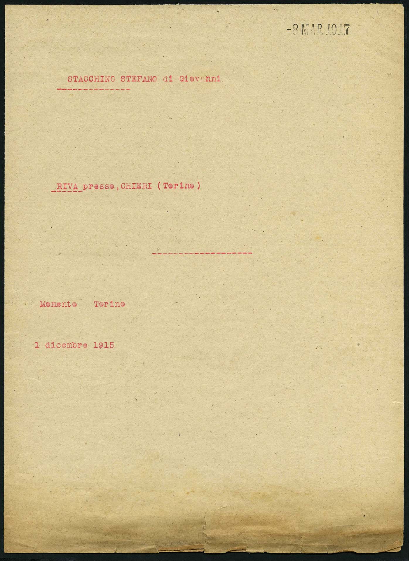 Stacchino Stefano, Riva presso Chieri (Torino) |