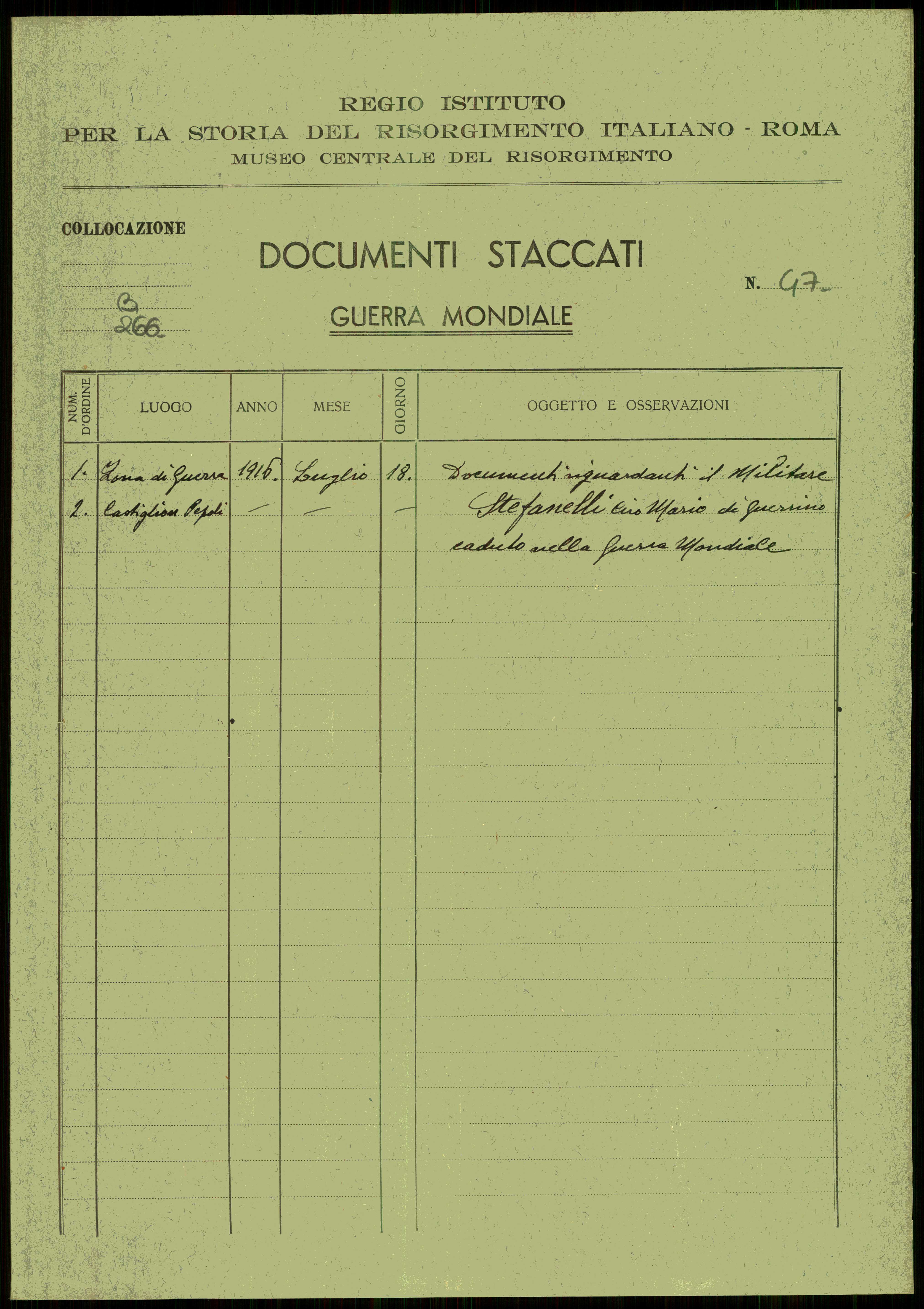 | Percorso: Istituto per la Storia del Risorgimento Italian.../Fondo caduti prima guerra mondiale/Stabile Michelino - Stefani Natale/Stefanelli Ciro, Castiglion dei Pepoli (Bologna) | |||||||||||
