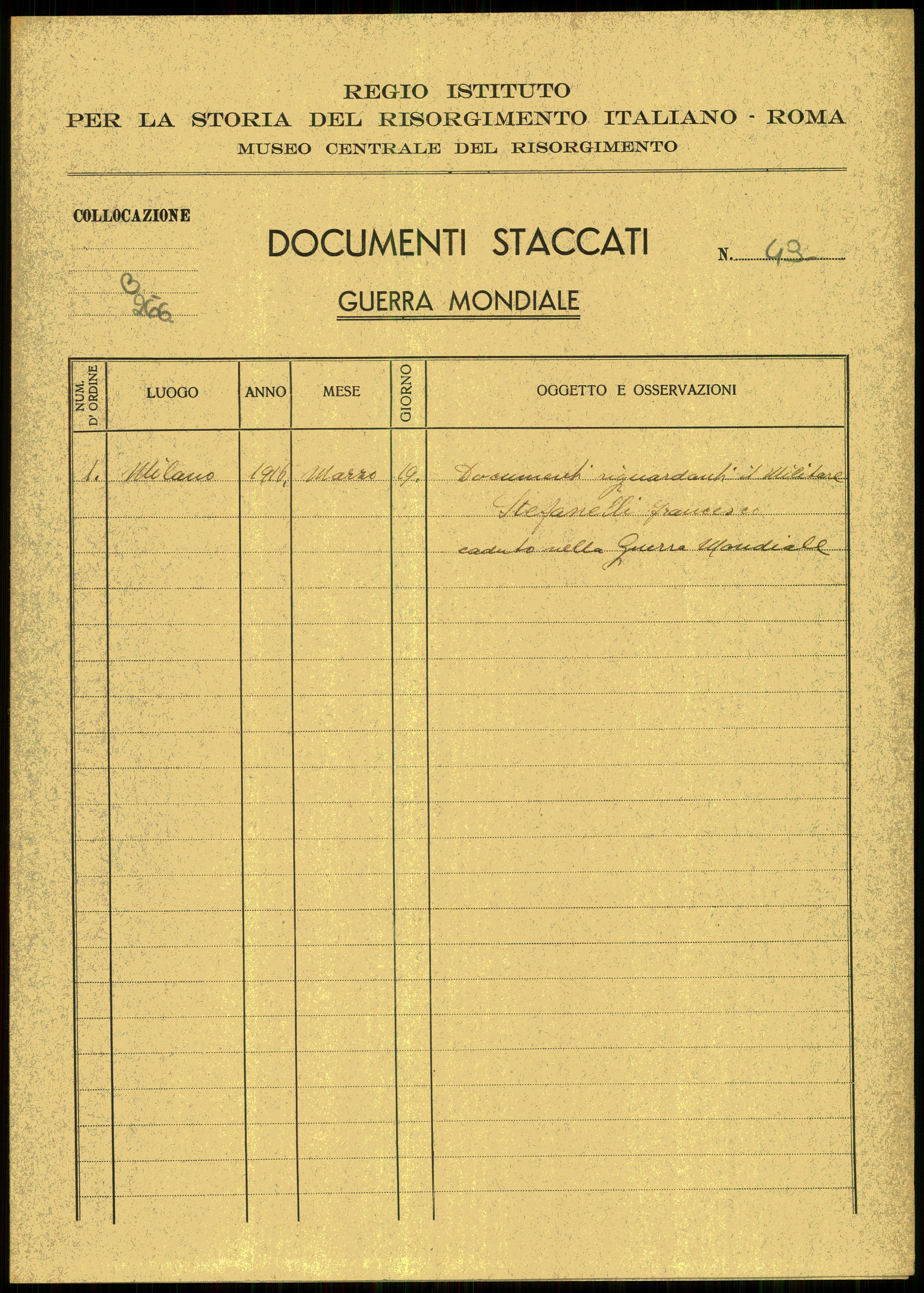 Percorso: Istituto per la Storia del Risorgimento Italian.../Fondo caduti prima guerra mondiale/Stabile Michelino - Stefani Natale/Stefanelli Francesco, Tuglie (Lecce)
