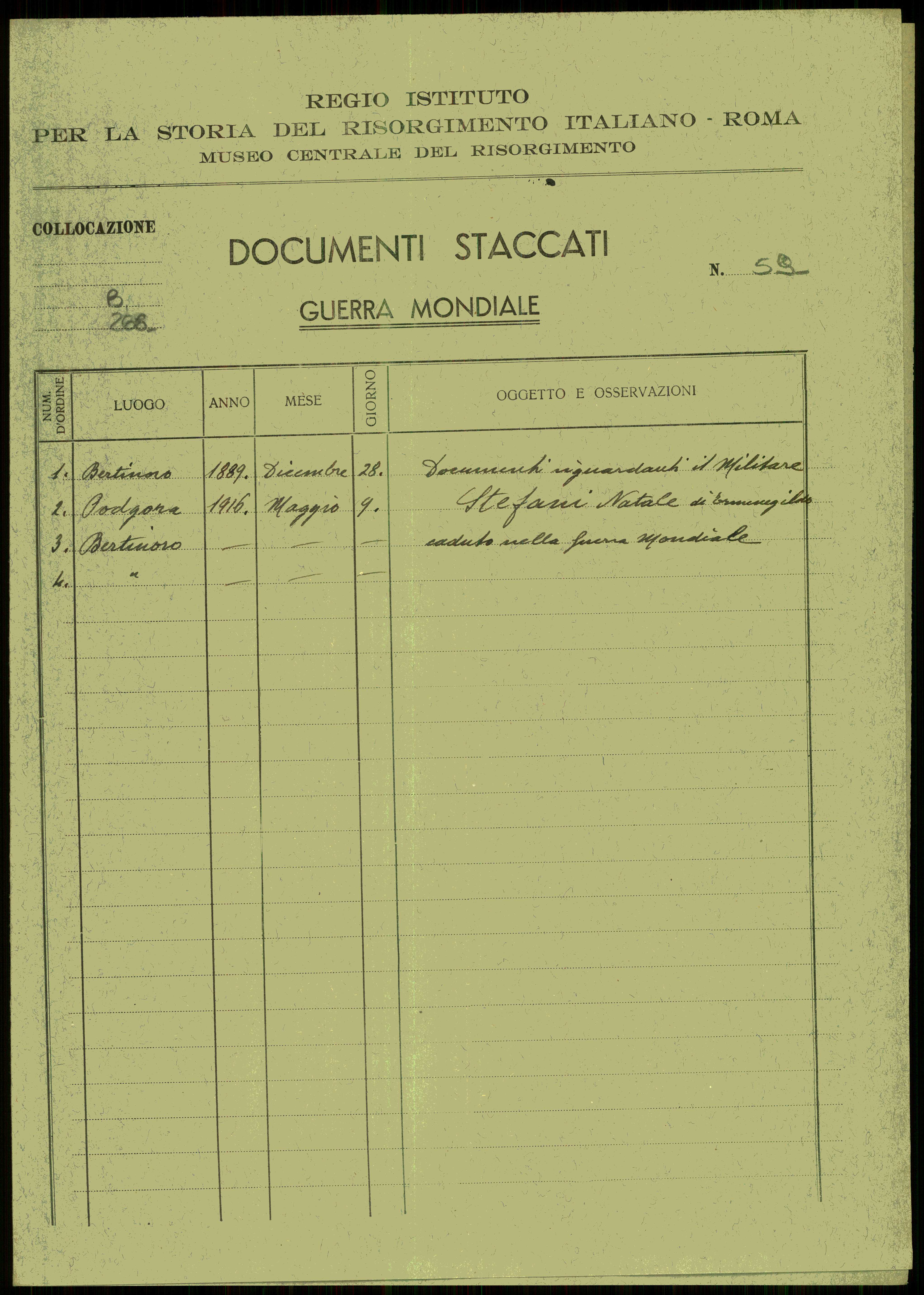 Istituto per la Storia del Risorgimento Italian.../Fondo caduti prima guerra mondiale/Stabile Michelino - Stefani Natale/Stefani Natale, Bertinoro (Forlė)