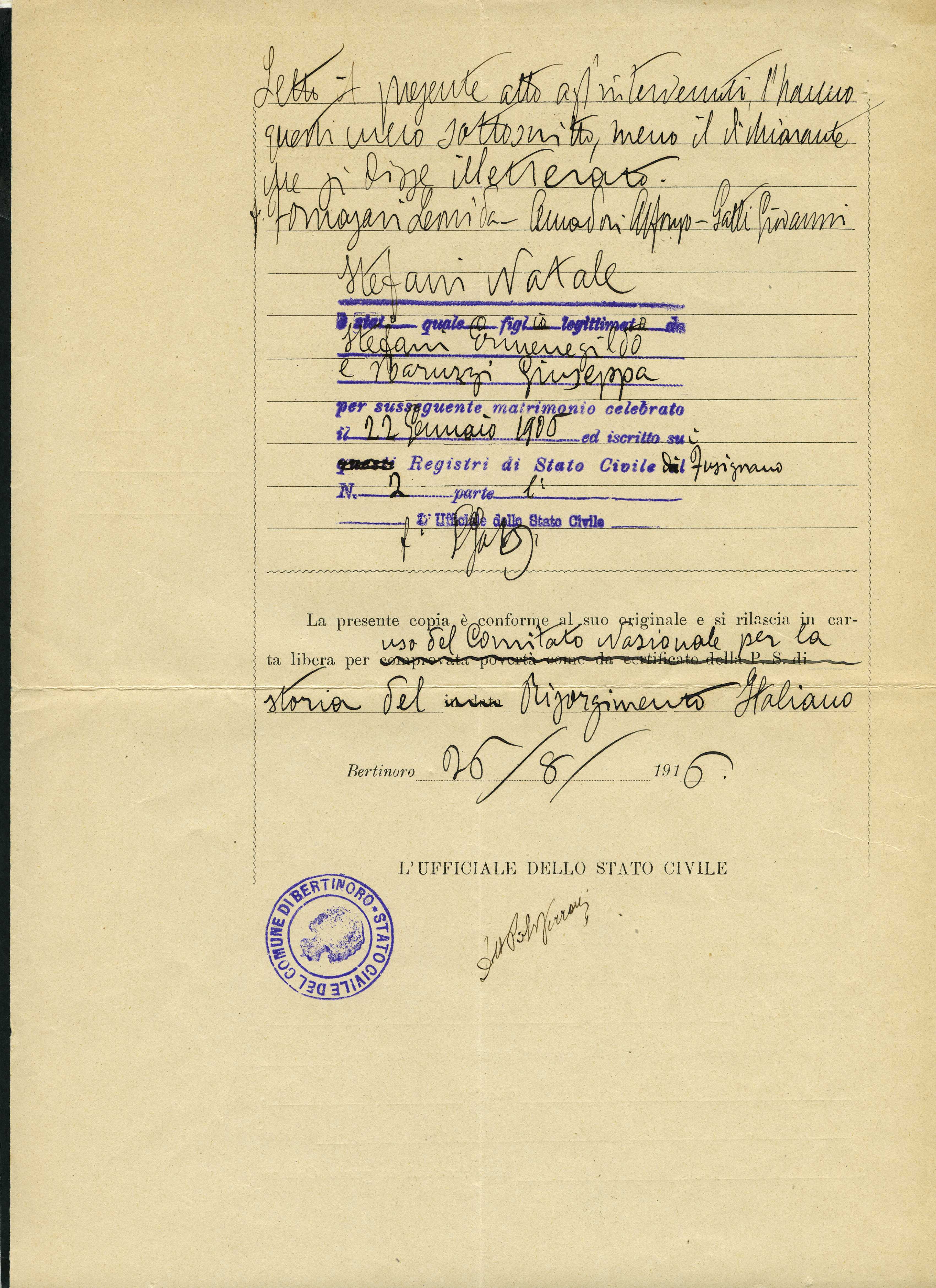 Istituto per la Storia del Risorgimento Italian.../Fondo caduti prima guerra mondiale/Stabile Michelino - Stefani Natale/Stefani Natale, Bertinoro (Forlė)