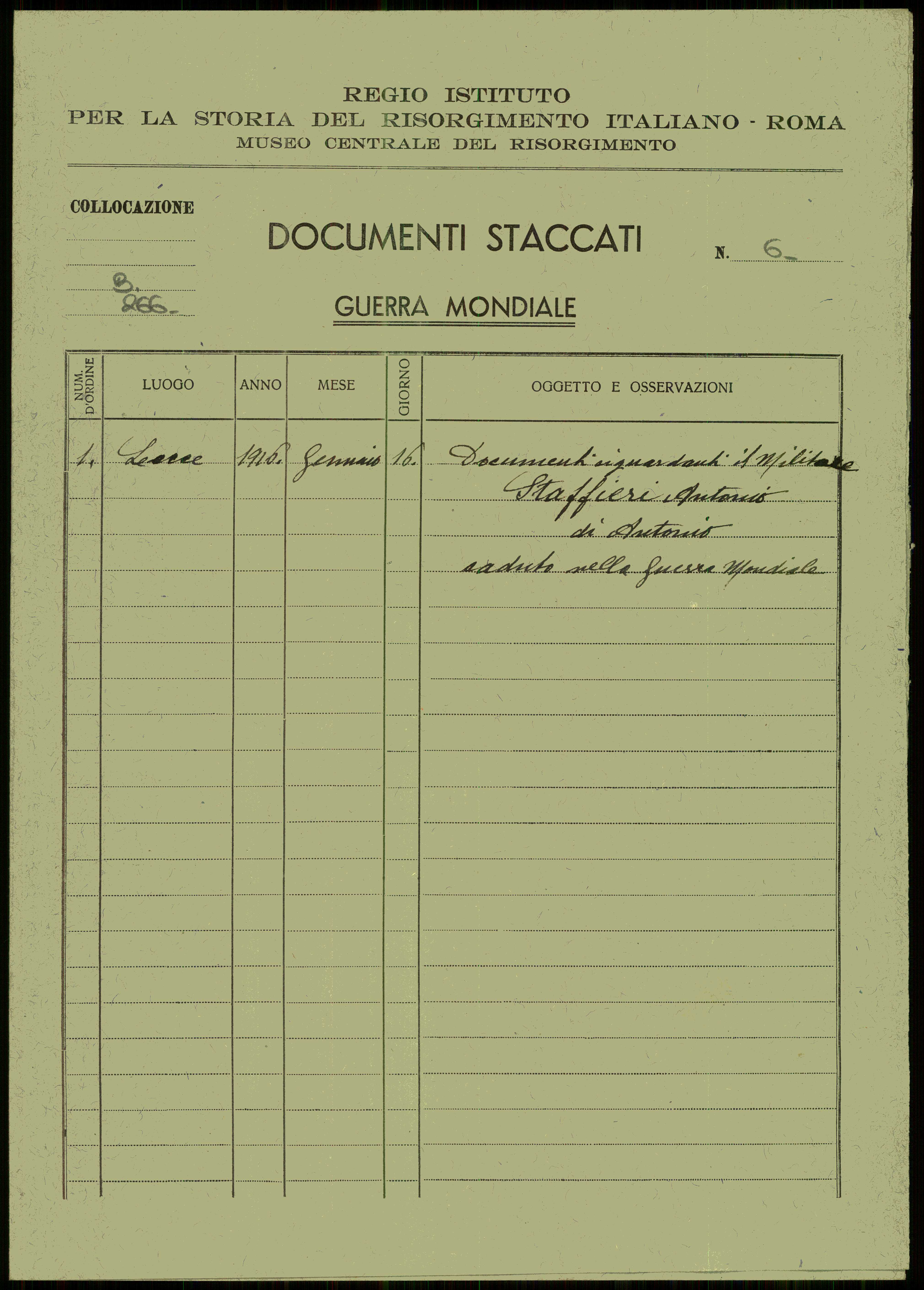 Istituto per la Storia del Risorgimento Italian.../Fondo caduti prima guerra mondiale/Stabile Michelino - Stefani Natale/Staffieri Antonio, Lecce