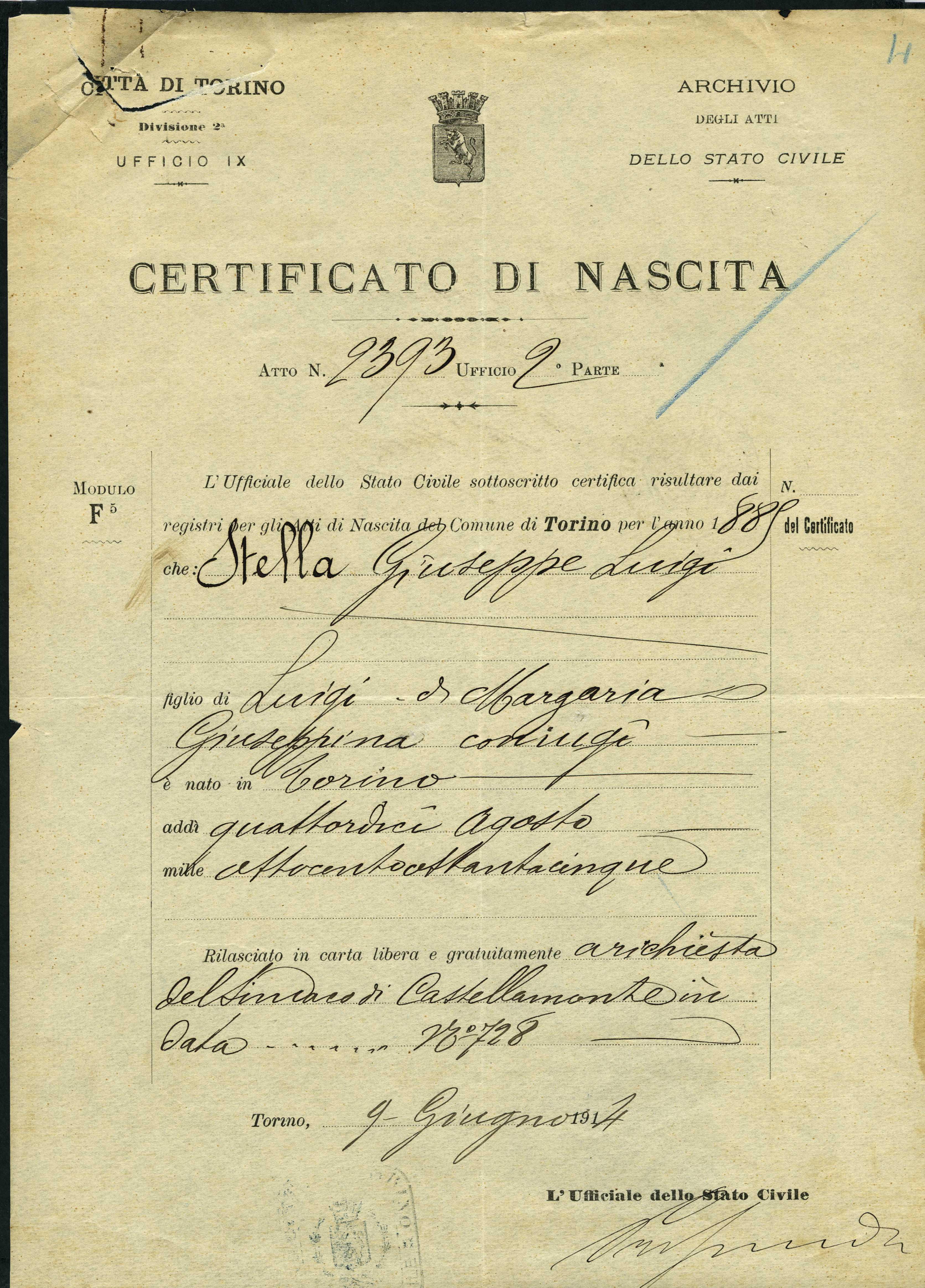 Percorso: Istituto per la Storia del Risorgimento Italian.../Fondo caduti prima guerra mondiale/Stefanini Bernardino - Stoppini Vittorio/Stella Giuseppe Luigi, Torino