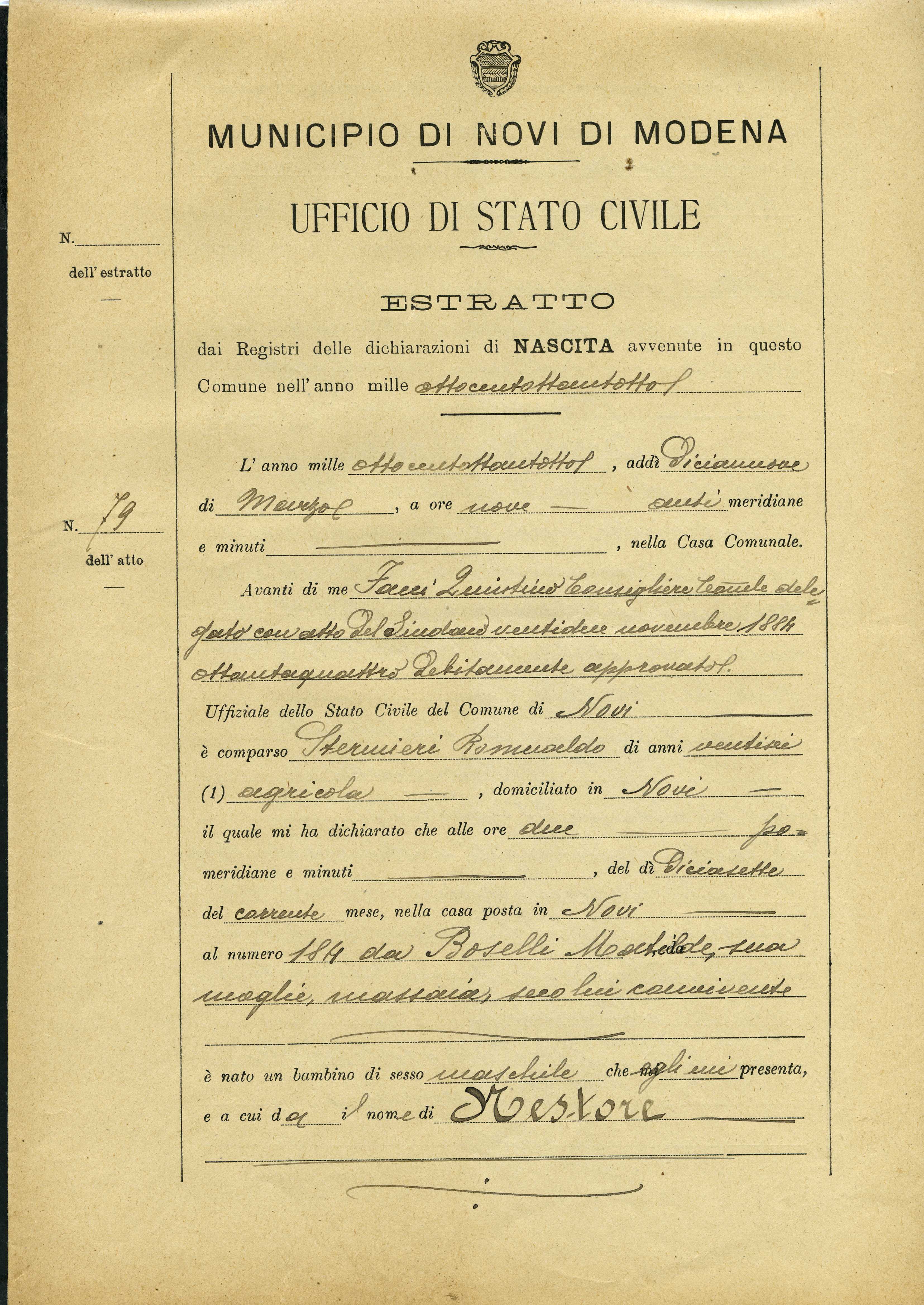 Documento: Stermieri Nestore, Novi di Modena (Modena)