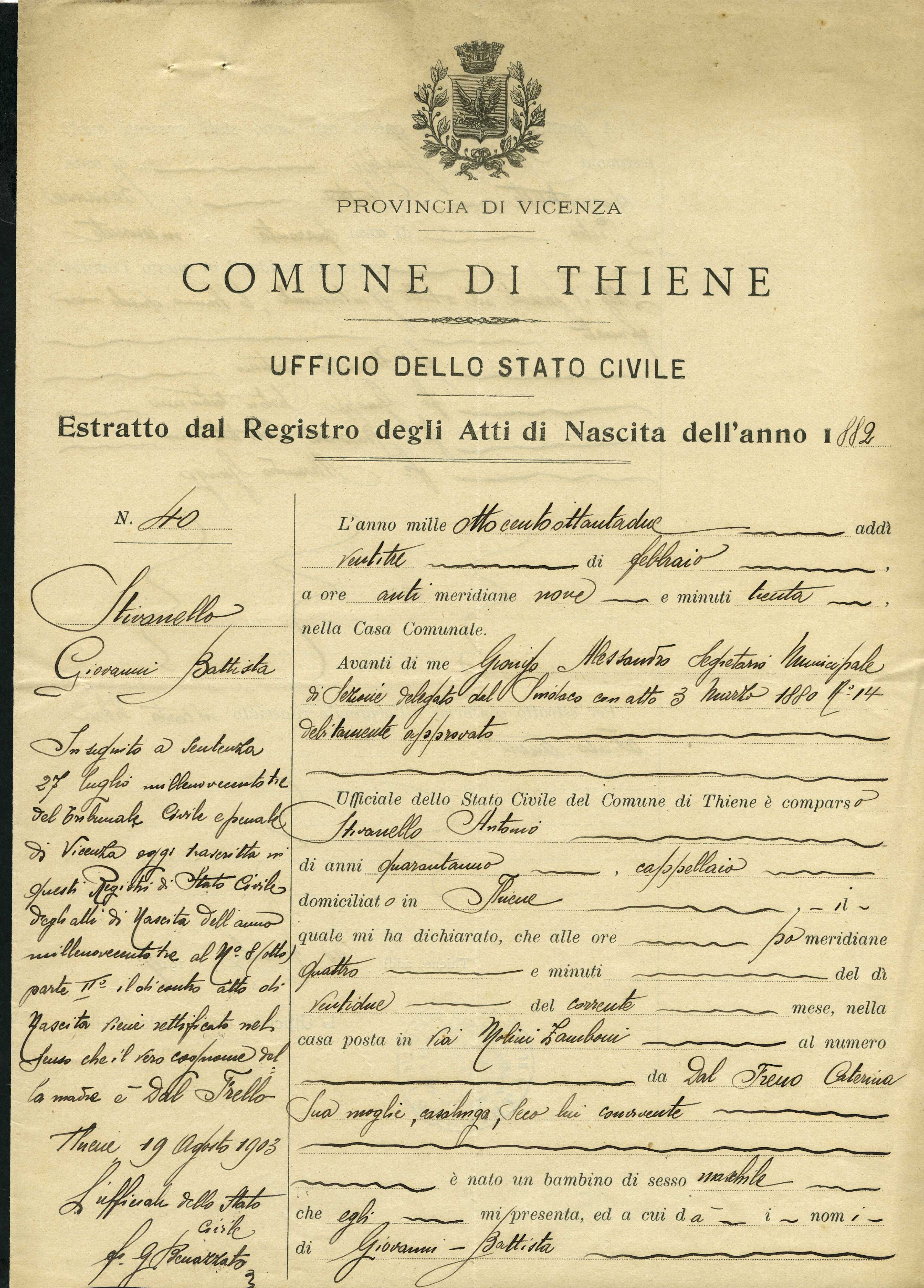 Documento: Stivanello Giovanni, Thiene (Vicenza)