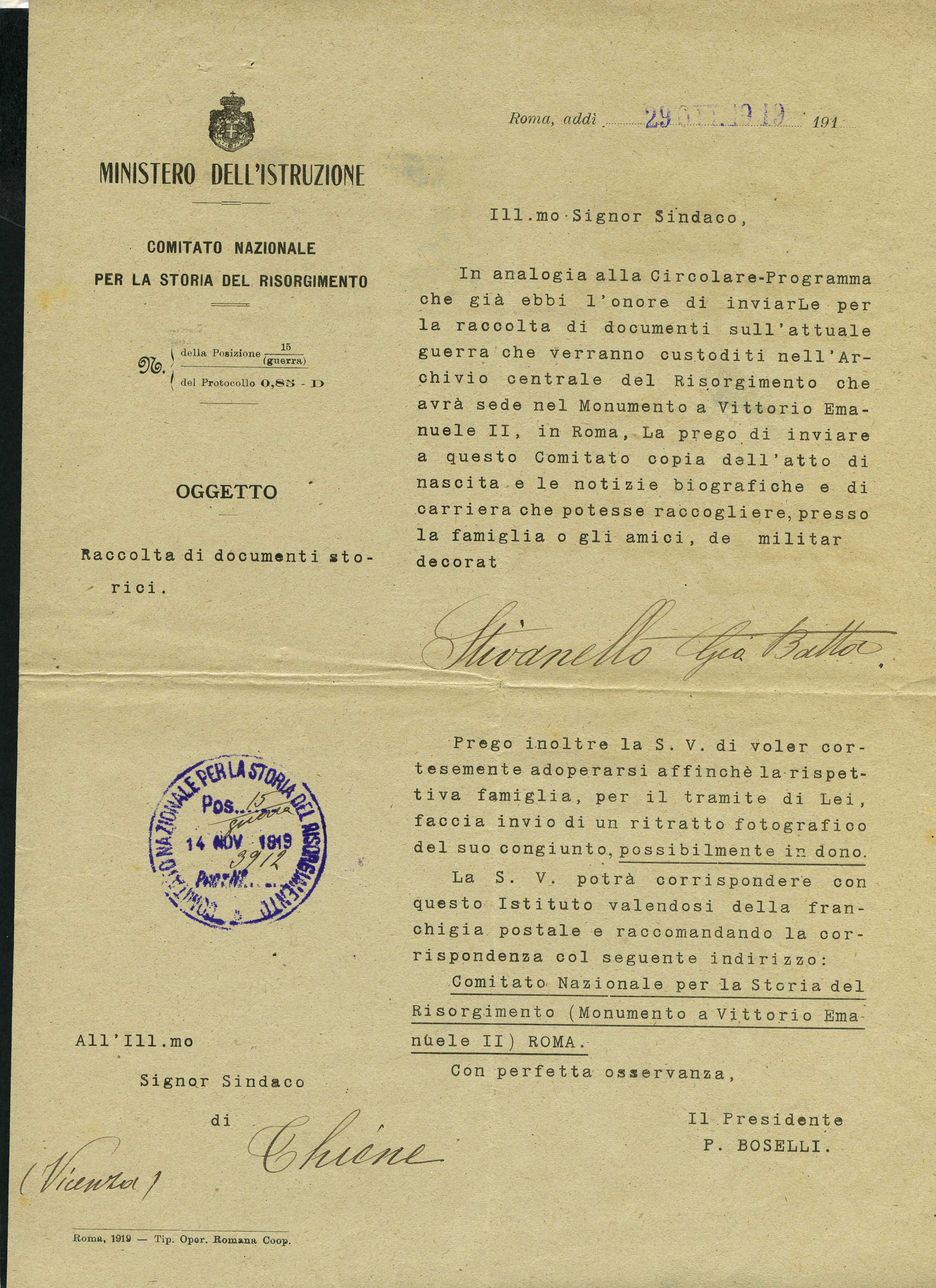 Percorso: Istituto per la Storia del Risorgimento Italian.../Fondo caduti prima guerra mondiale/Stefanini Bernardino - Stoppini Vittorio/Stivanello Giovanni, Thiene (Vicenza)
