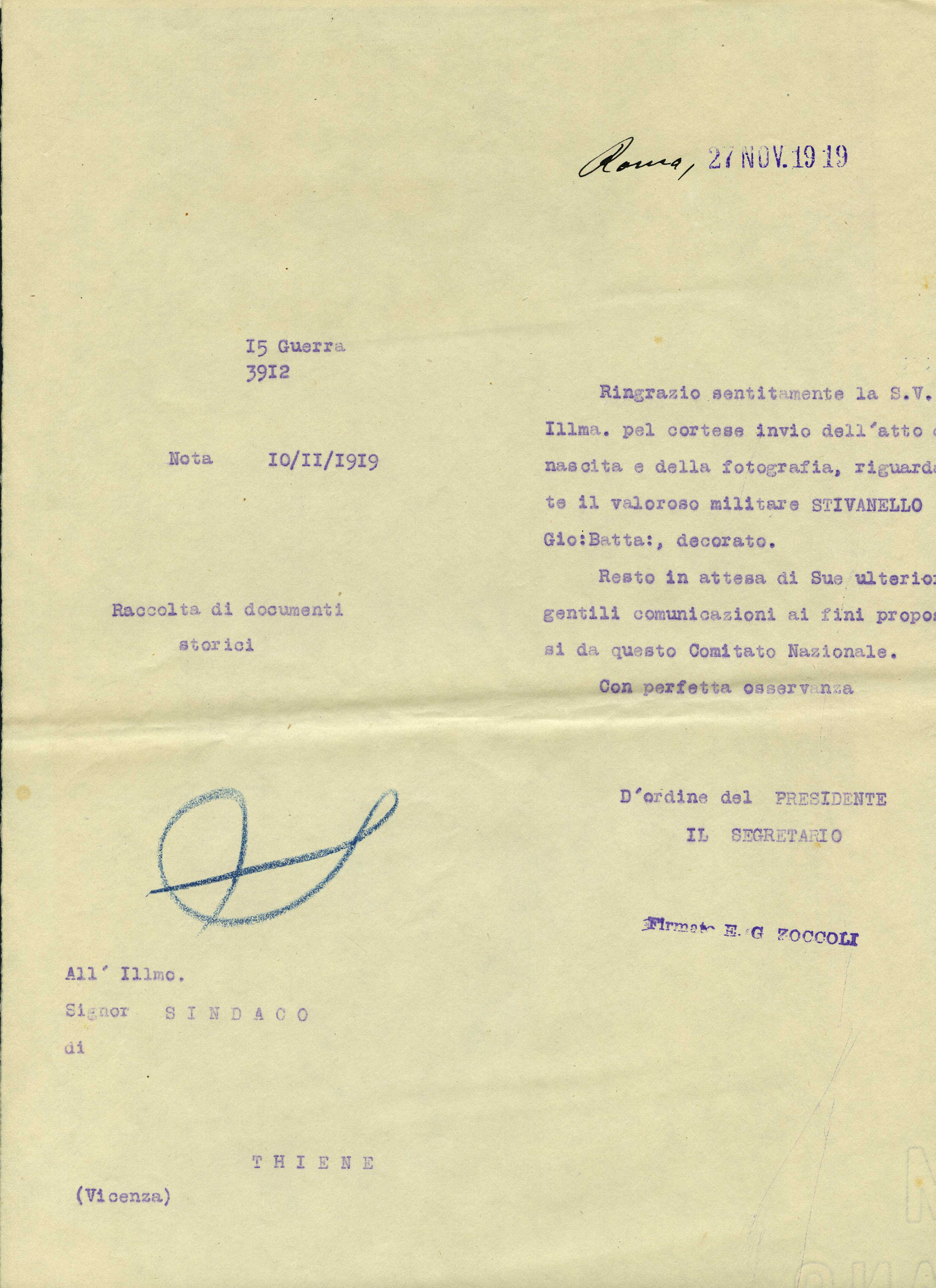 Percorso: Istituto per la Storia del Risorgimento Italian.../Fondo caduti prima guerra mondiale/Stefanini Bernardino - Stoppini Vittorio/Stivanello Giovanni, Thiene (Vicenza)