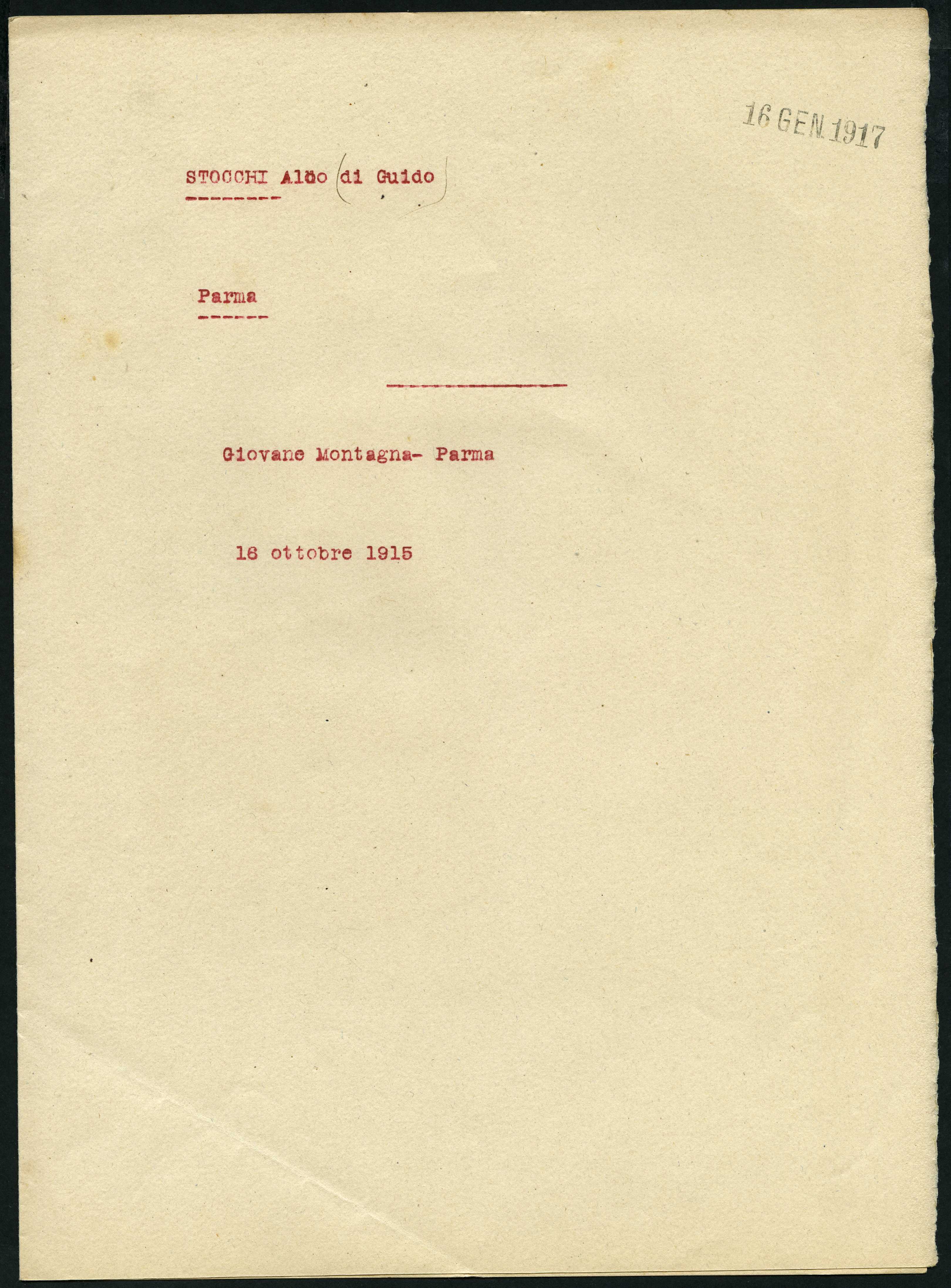 Istituto per la Storia del Risorgimento Italian.../Fondo caduti prima guerra mondiale/Stefanini Bernardino - Stoppini Vittorio/Stocchi Aldo, Parma