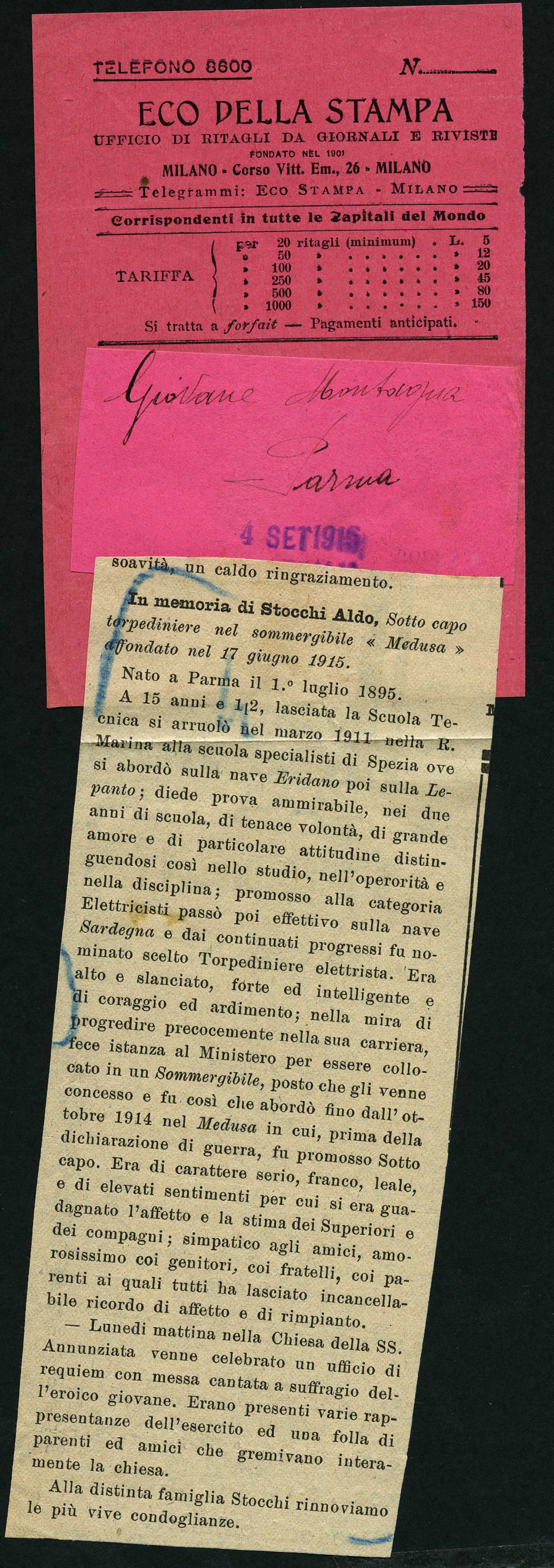 Istituto per la Storia del Risorgimento Italian.../Fondo caduti prima guerra mondiale/Stefanini Bernardino - Stoppini Vittorio/Stocchi Aldo, Parma