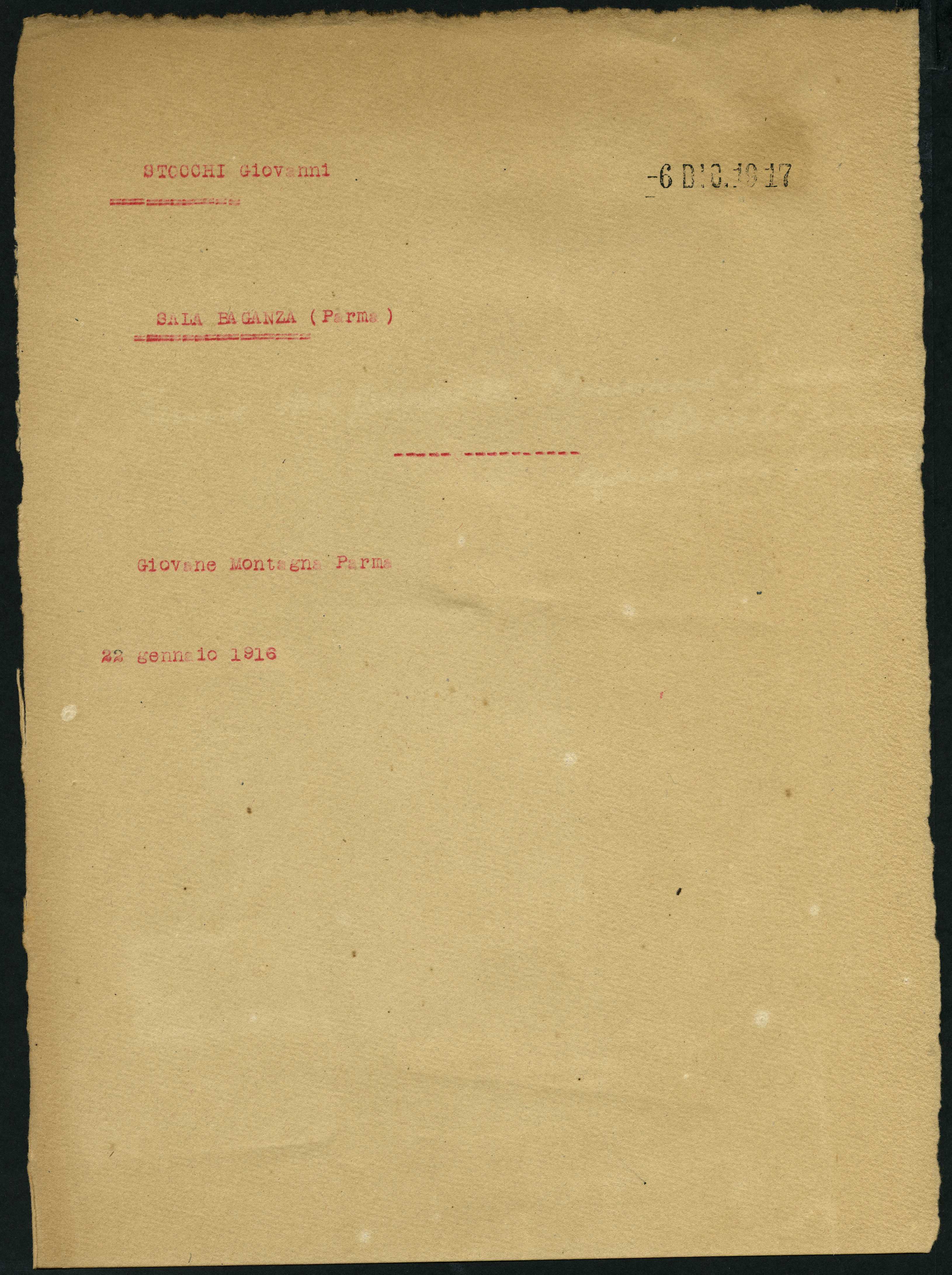 Documento: Stocchi Giovanni, Sala Baganza (Parma)