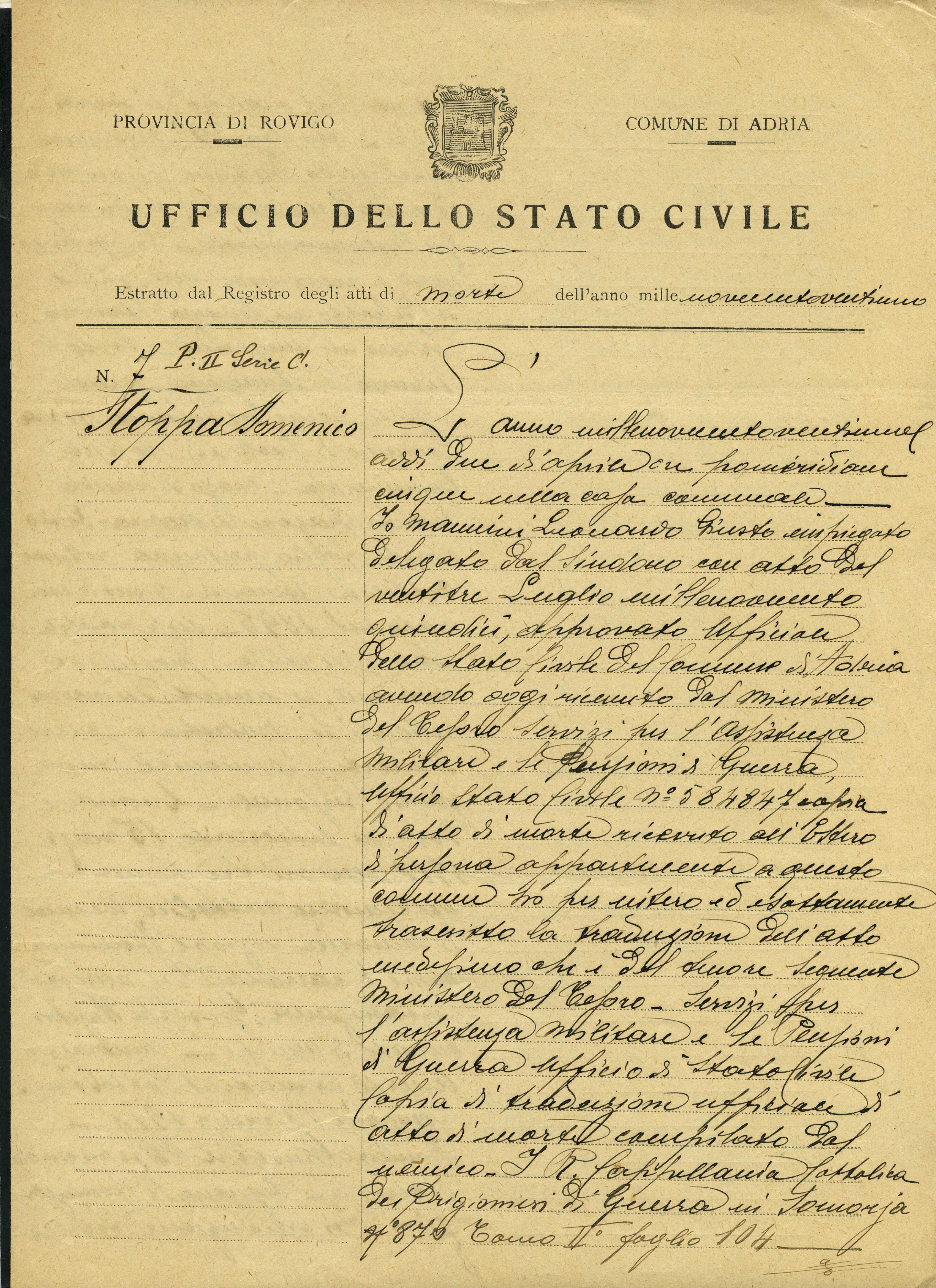 Documento: Stoppa Domenico, Adria (Rovigo)